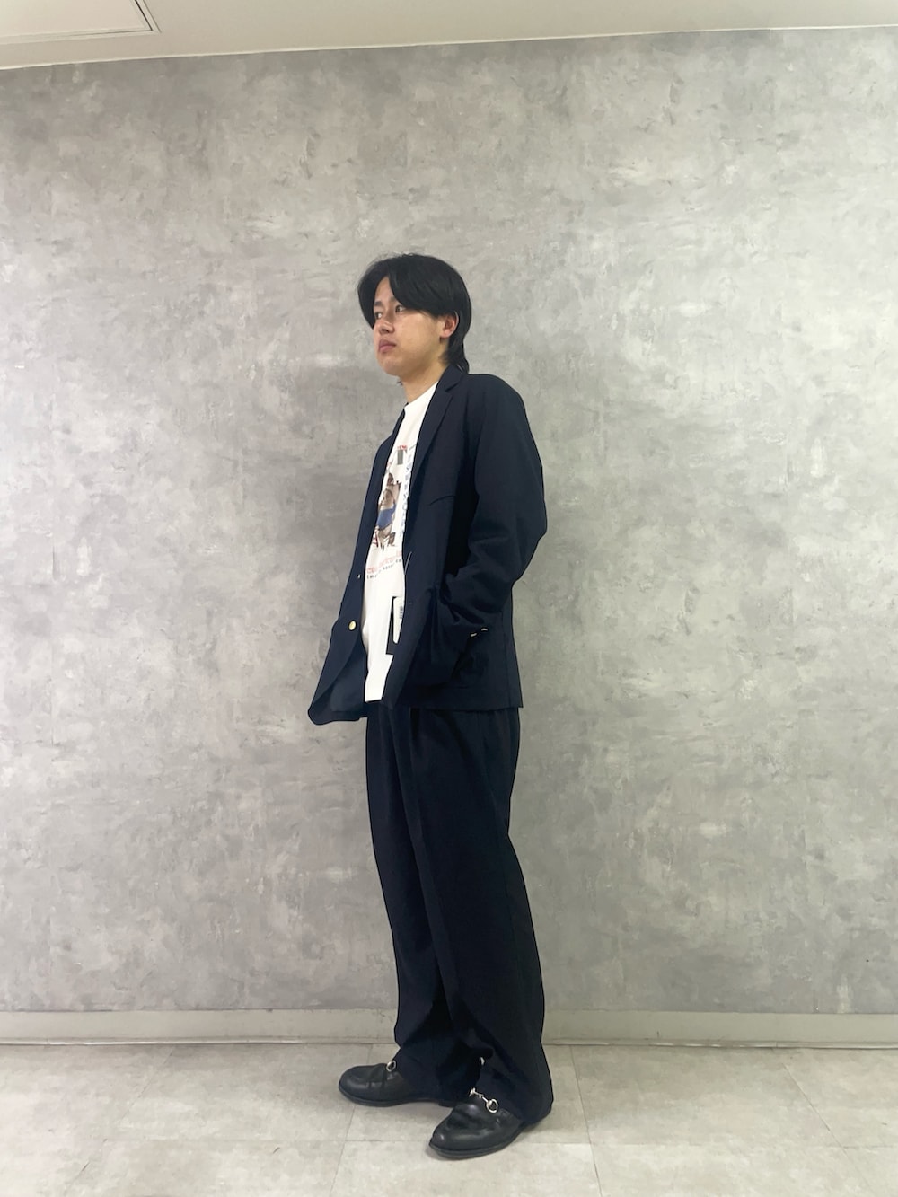 インナーにグラフィックteeを入れると、程よい抜け感が出ます。