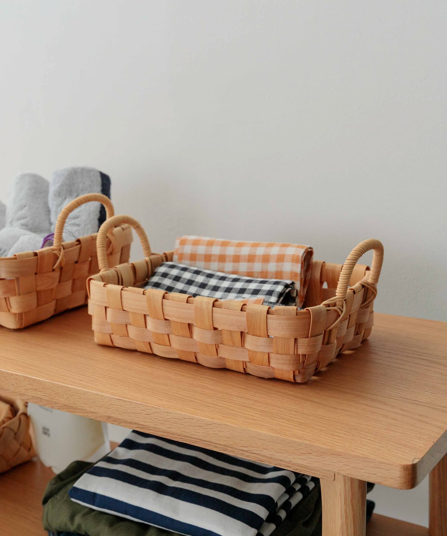 通気性のいい水杉を用いて、ざっくりと大きめに編んだバスケットです。