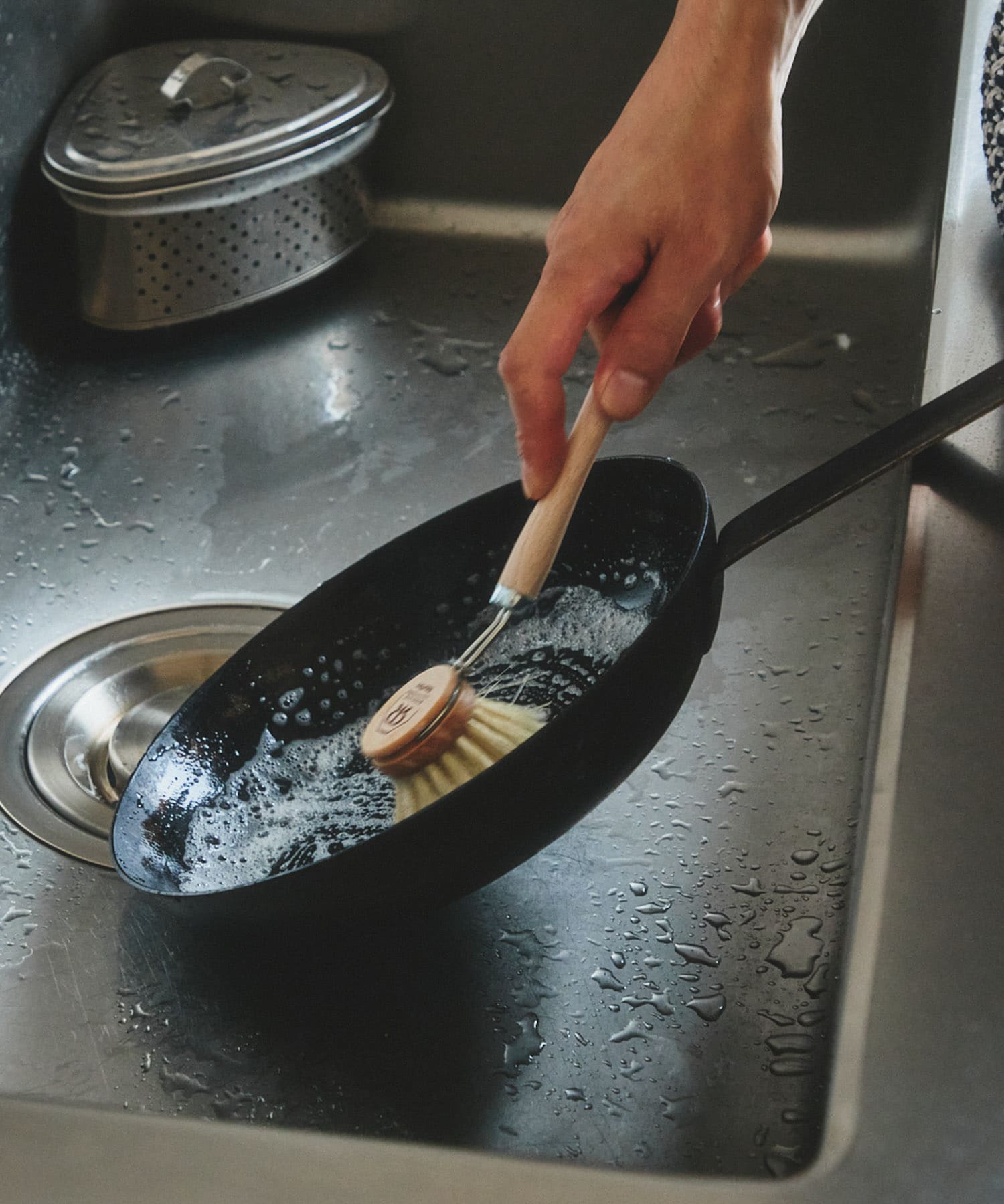 柔らかい馬毛を使用しているので、フッ素樹脂加工などの特殊加工のお鍋やフライパン、食器類、ホーローアイテム、ステンレス流し台の洗浄など幅広く活躍してくれます!