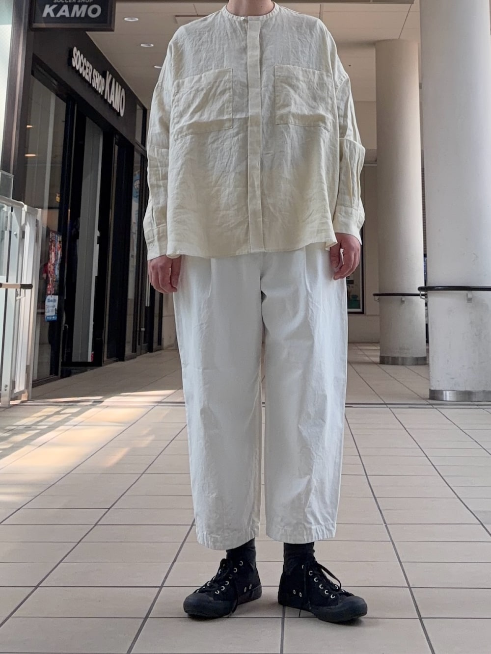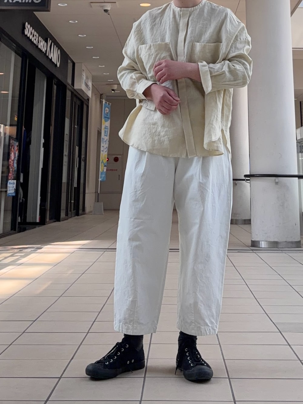 春は白いボトムをスタイリングに取り入れたくなりますね。今回はかぐれの名品コットンクロップドパンツでお出かけスタイルです。