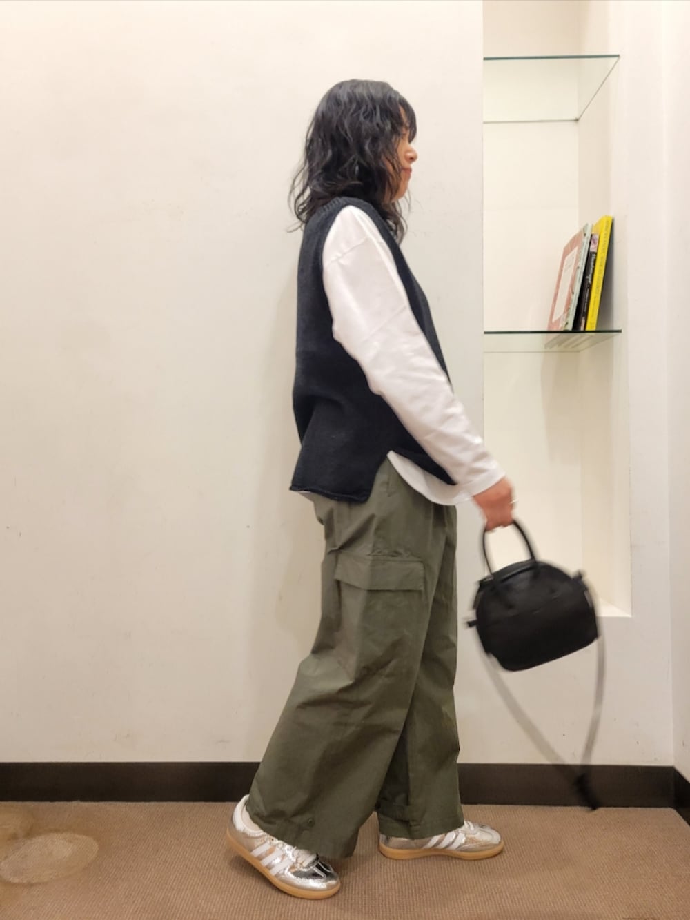 厚手のインナーも合わせやすいです。