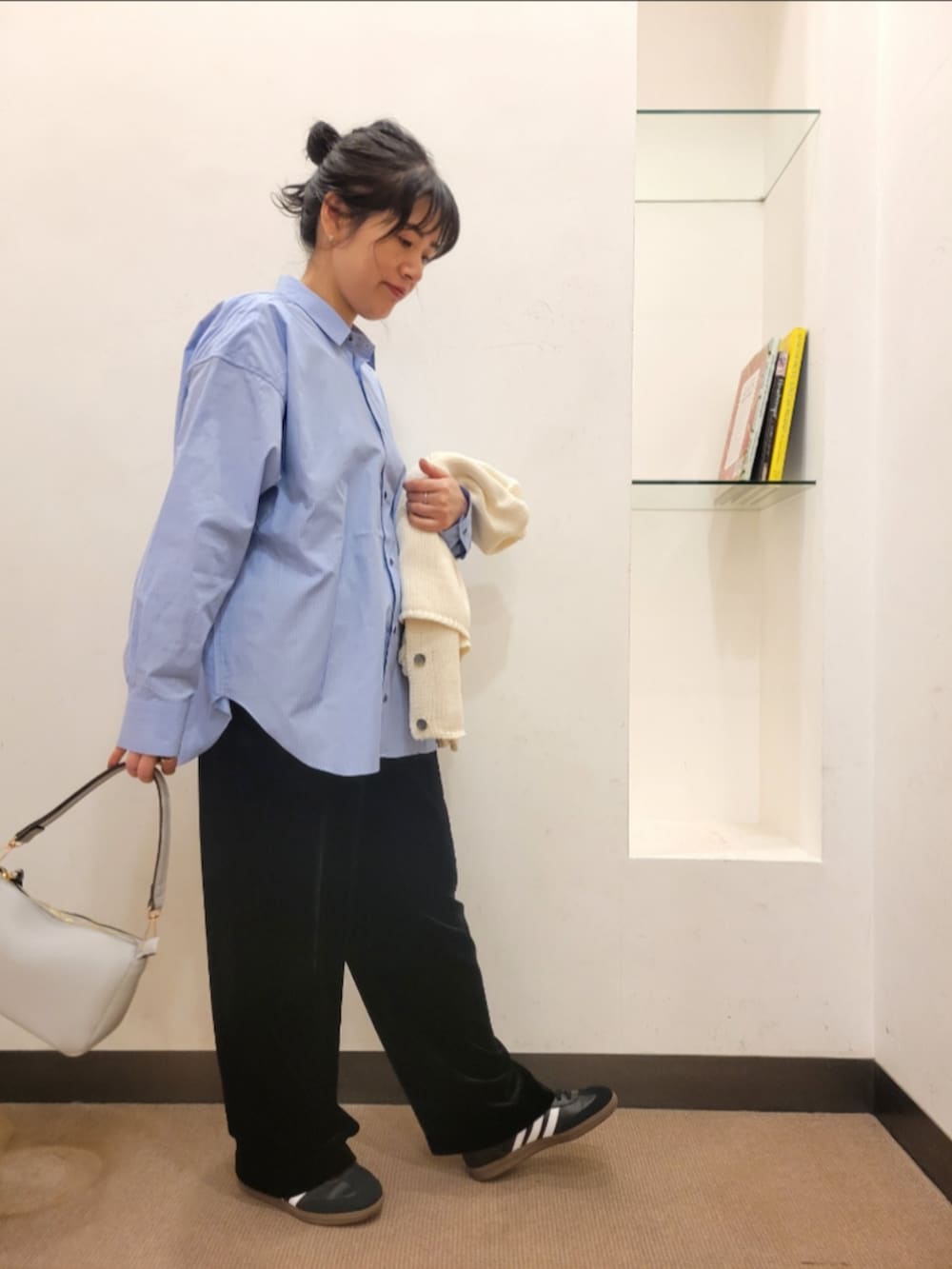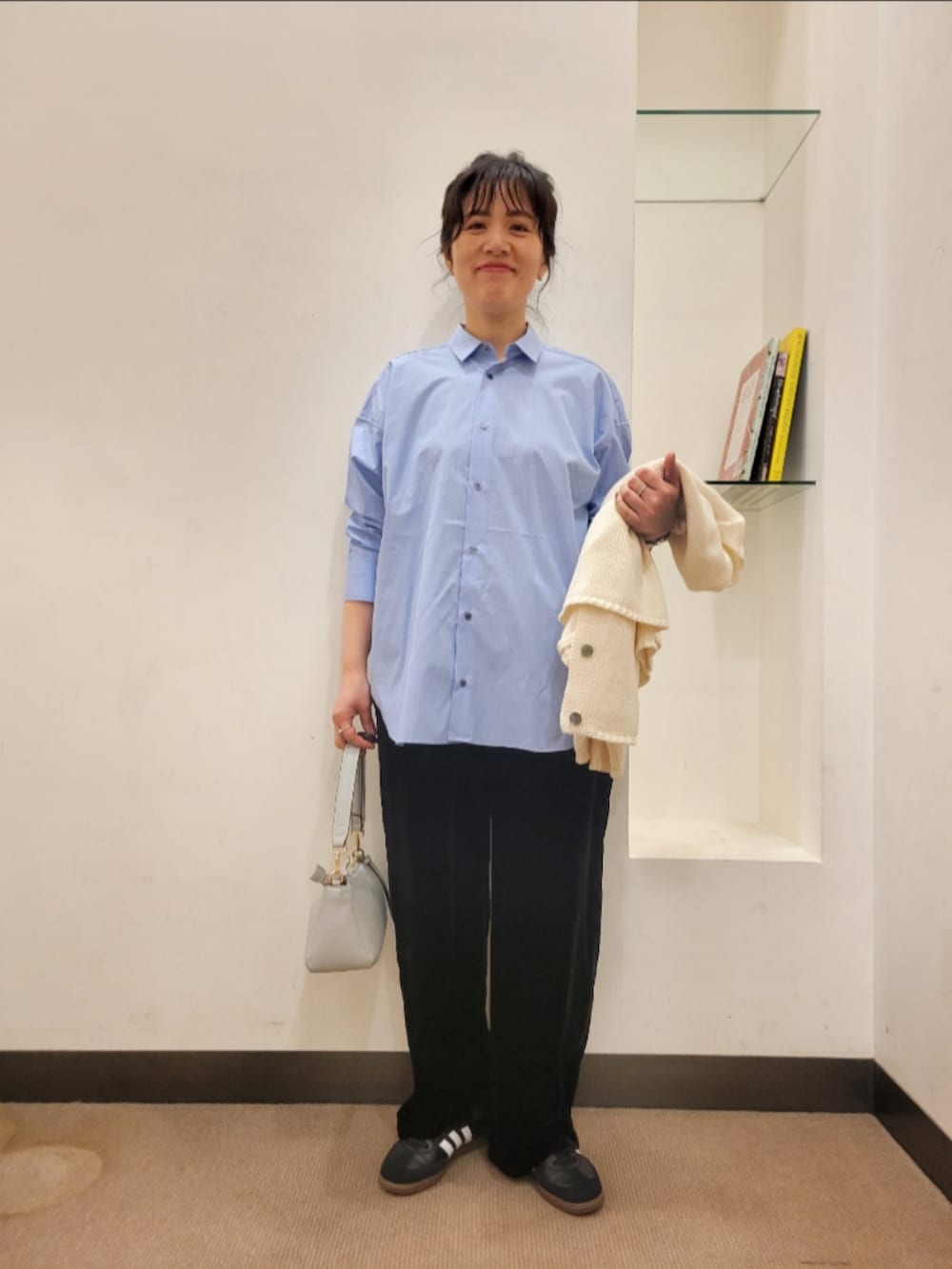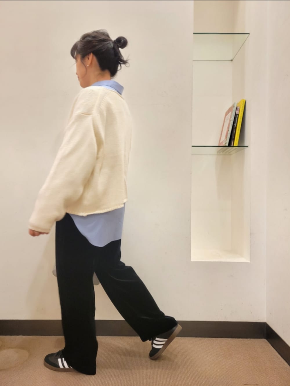 シャツはゆったりで着丈長めで