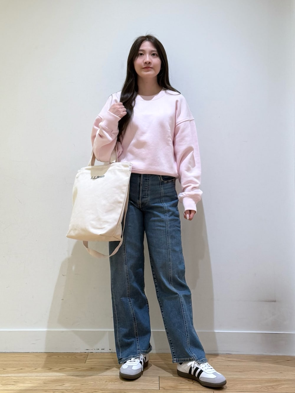 別注のデニムは、ハイウエストなのでスタイルアップ効果があり、ストレッチが効いた素材なので動きやすくおすすめです!