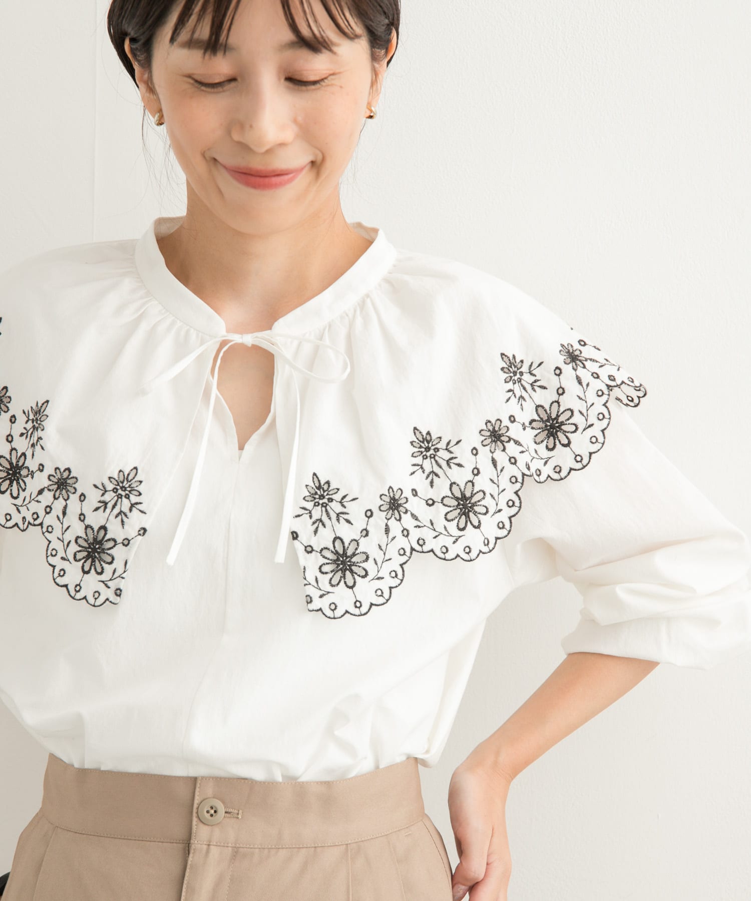 大きめの襟と刺繍がとても印象的な一枚です🪡