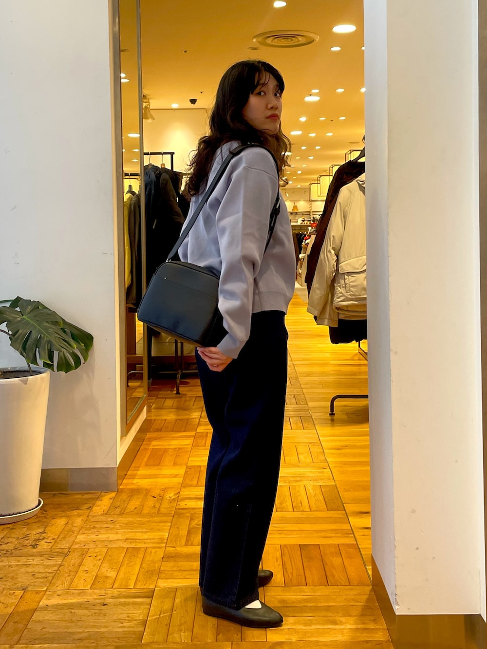 バッグは店頭で人気のスクエアバッグです!