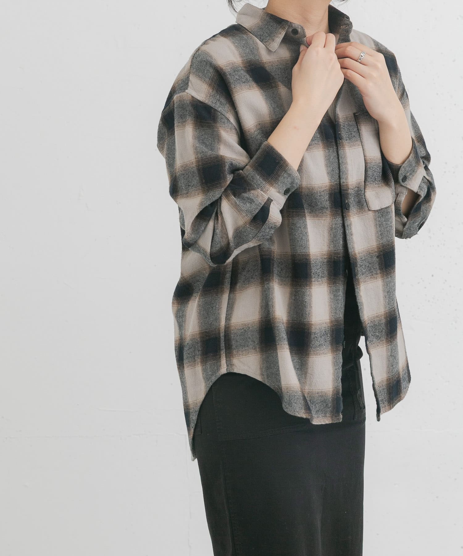 製品染オンブレーチェックシャツ