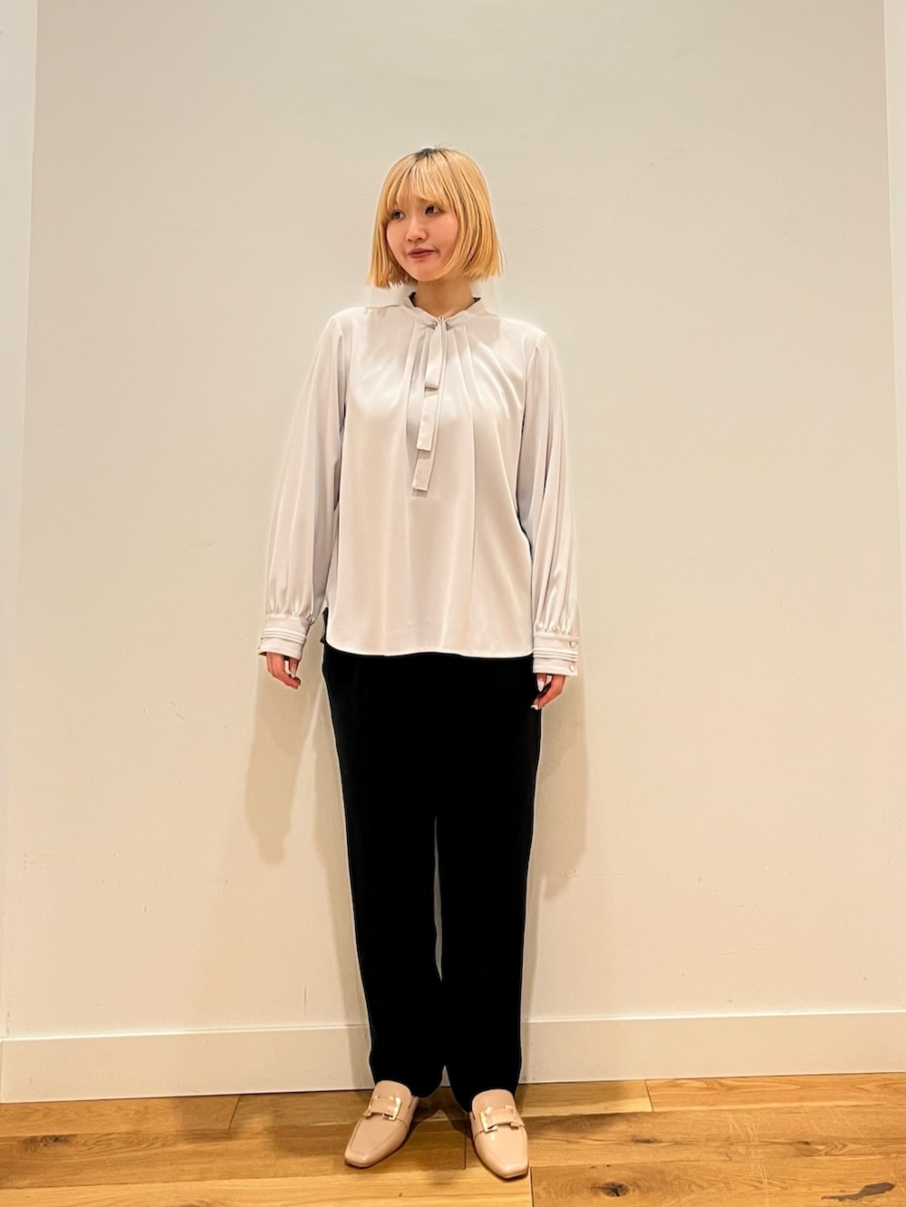 リボンポイントタックブラウス