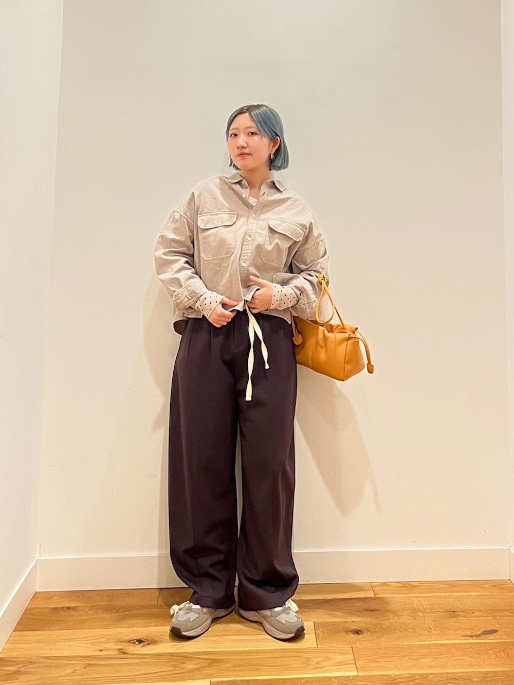 ショート丈のおかげで重心が上がり、ロングスカートやワイドパンツと合わせるだけで脚長効果も抜群です。