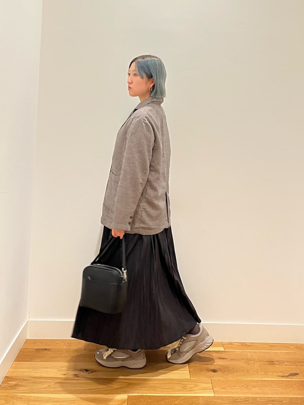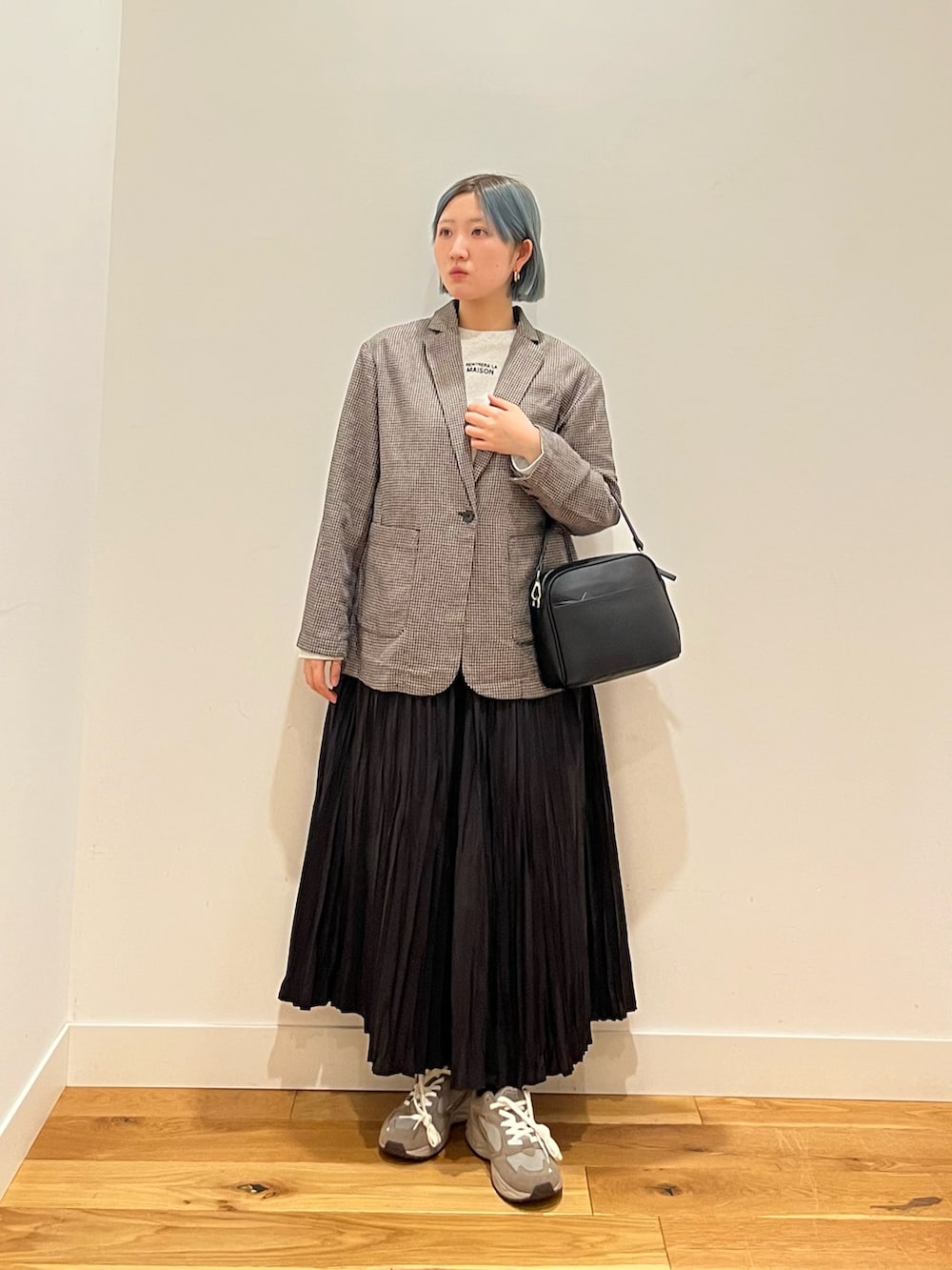 主張しない細かな格子柄がシンプルながらもポイントになり、スタイリングに華を持たせてくれます。