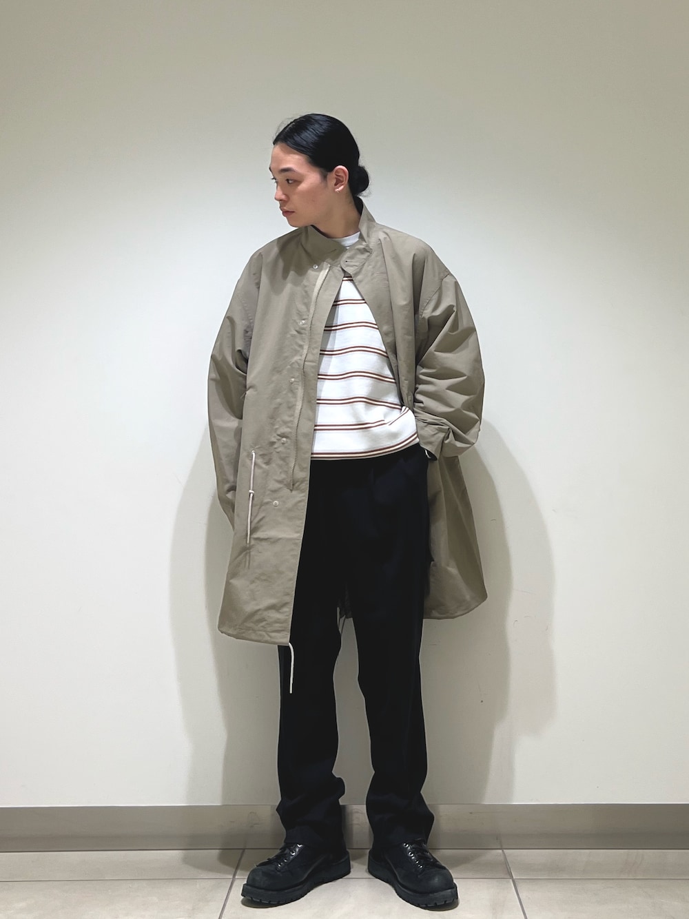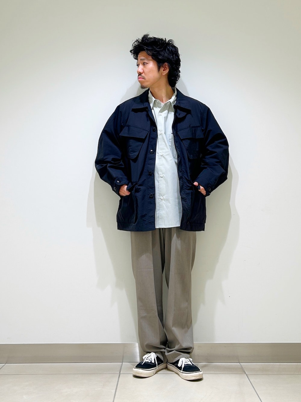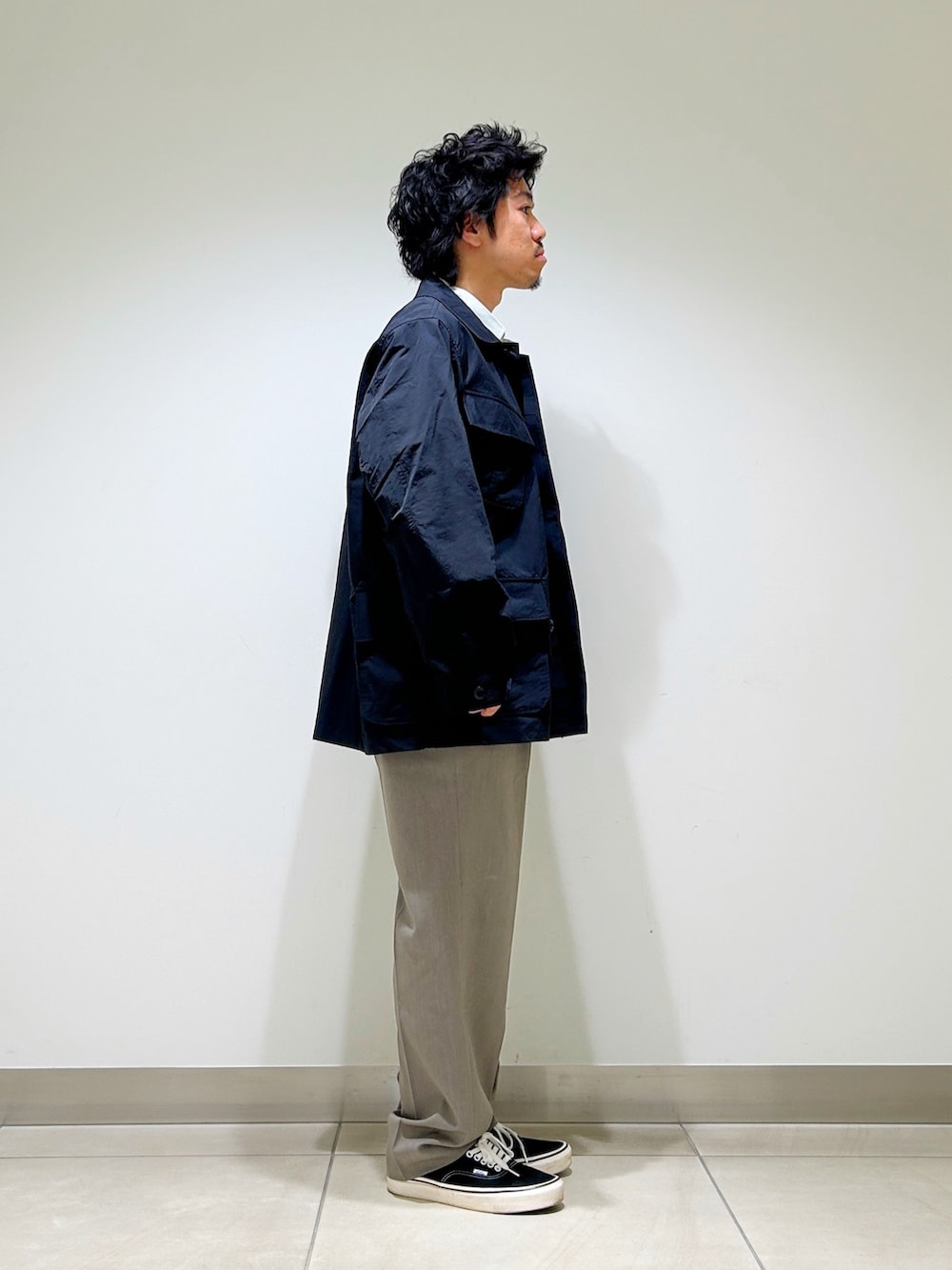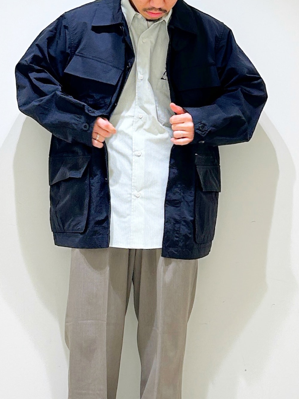 洗いざらしたようなナイロン生地が小慣れた印象な一着。