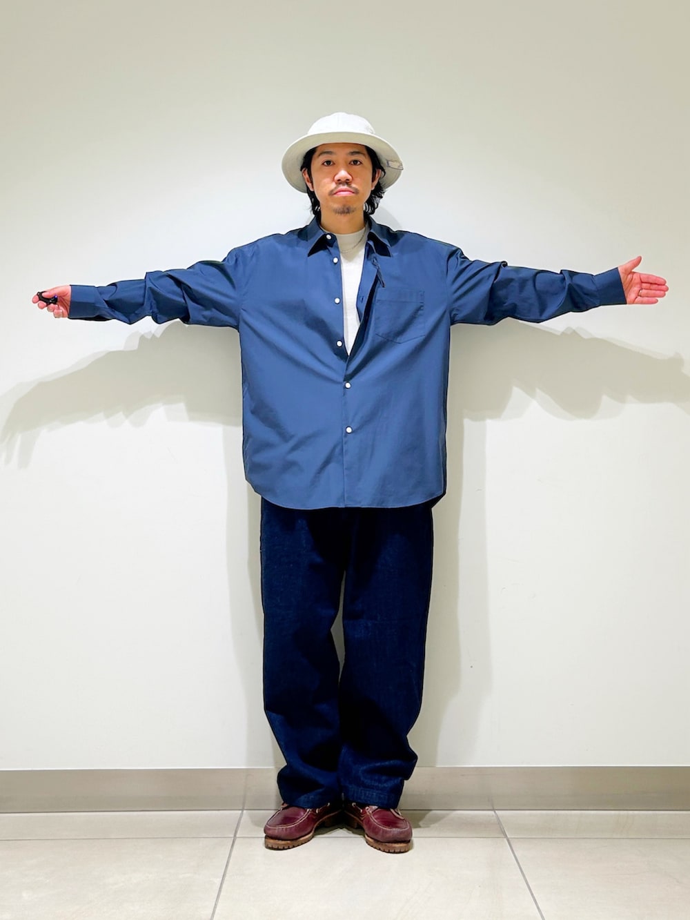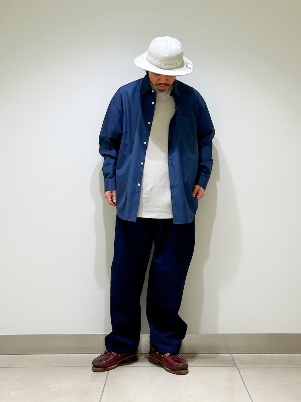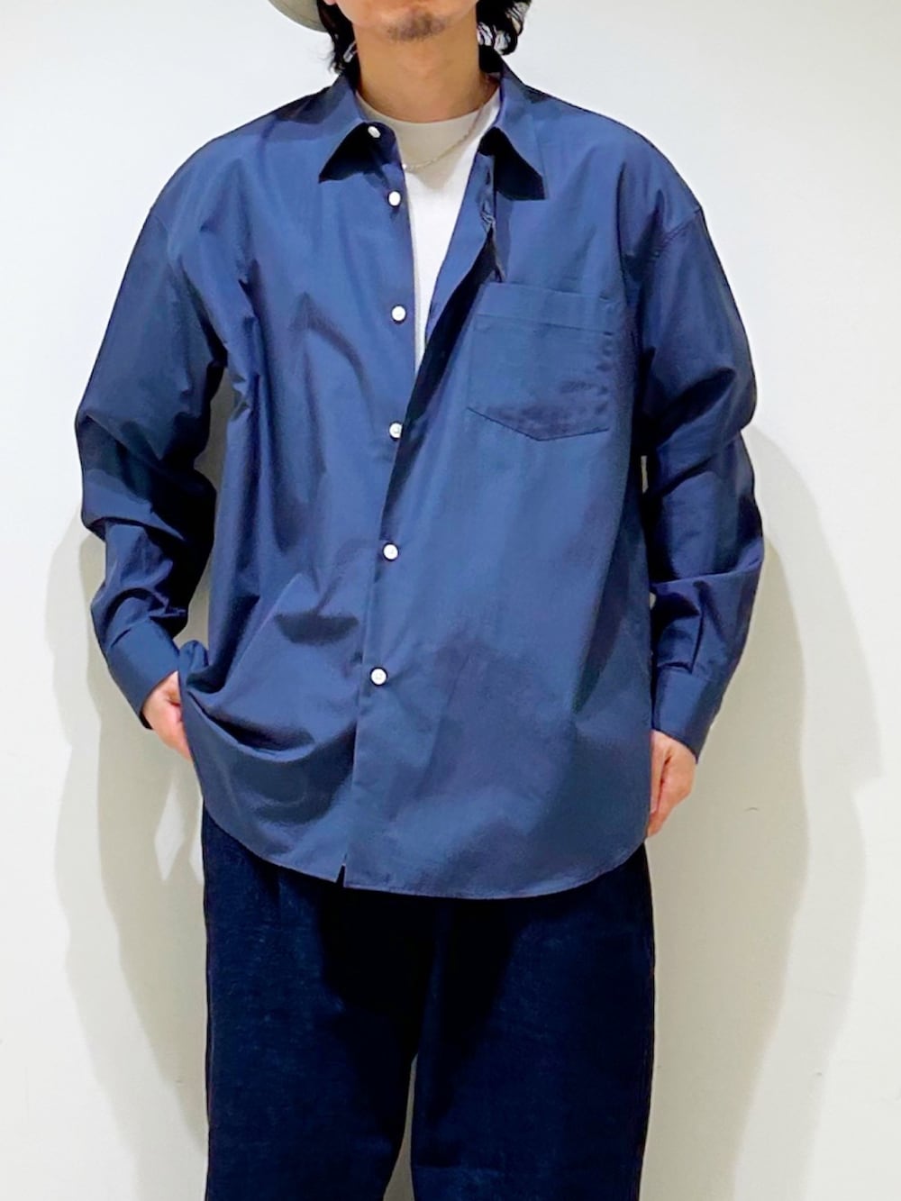 テーラーで使用される生地をオーバーサイズで仕立てた非常に塩梅の良いシャツです。