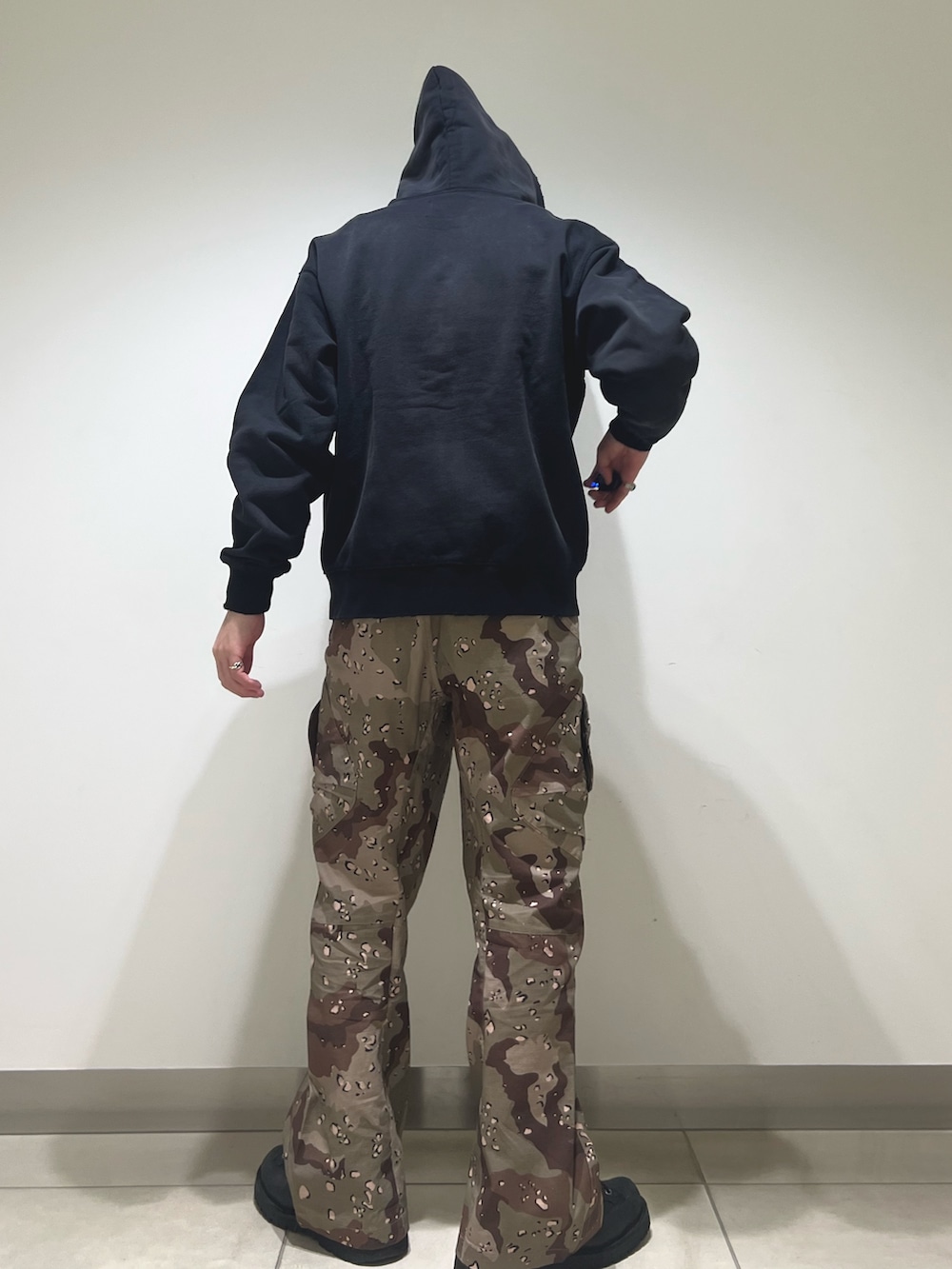 個人的にはこの立体裁断のカモ柄カーゴパンツが推しです。