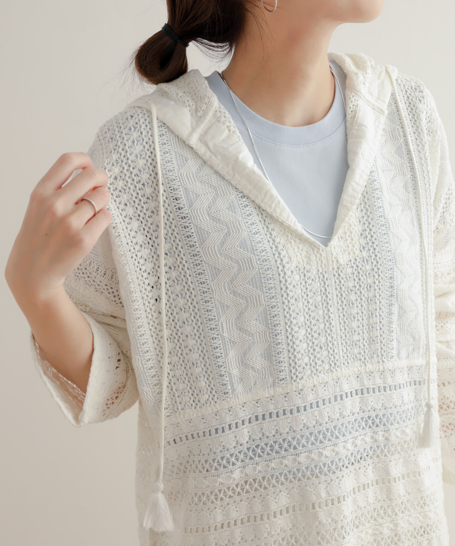 お尻まですっぽりかくれるフーディーです!甘くなりすぎない大人レースが可愛いですね☆