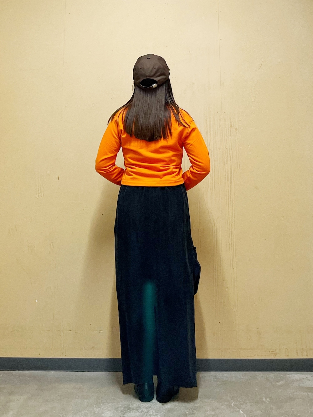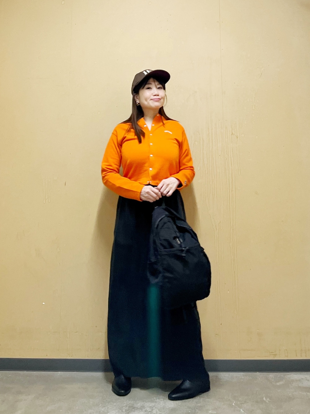オレンジ色が映えるカーディガンをチョイスしました☆