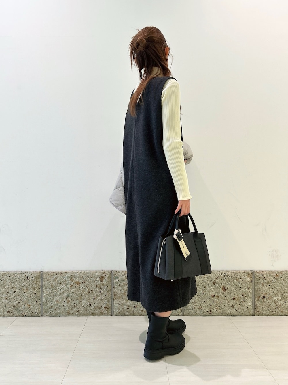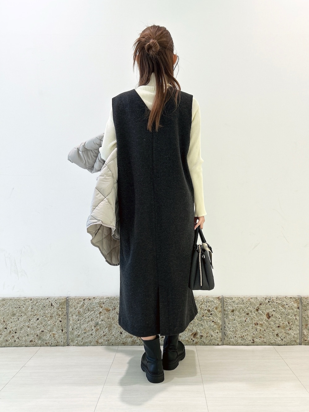 インナーにはもちっとした伸縮性のあるタートルニットを。