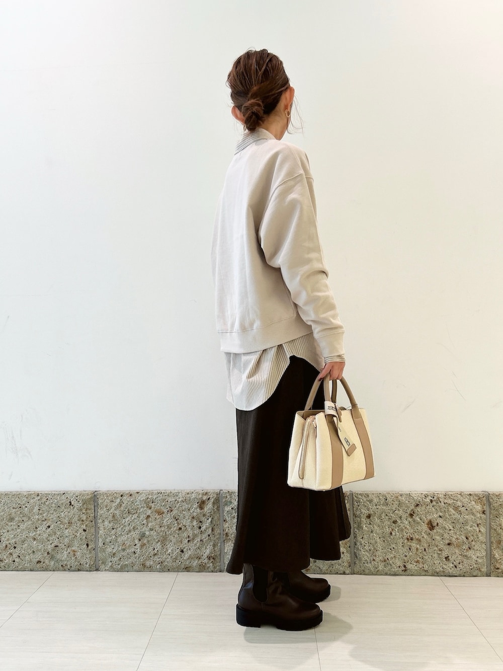 インナーのシャツはベージュベースの柔らかなカラーリングが