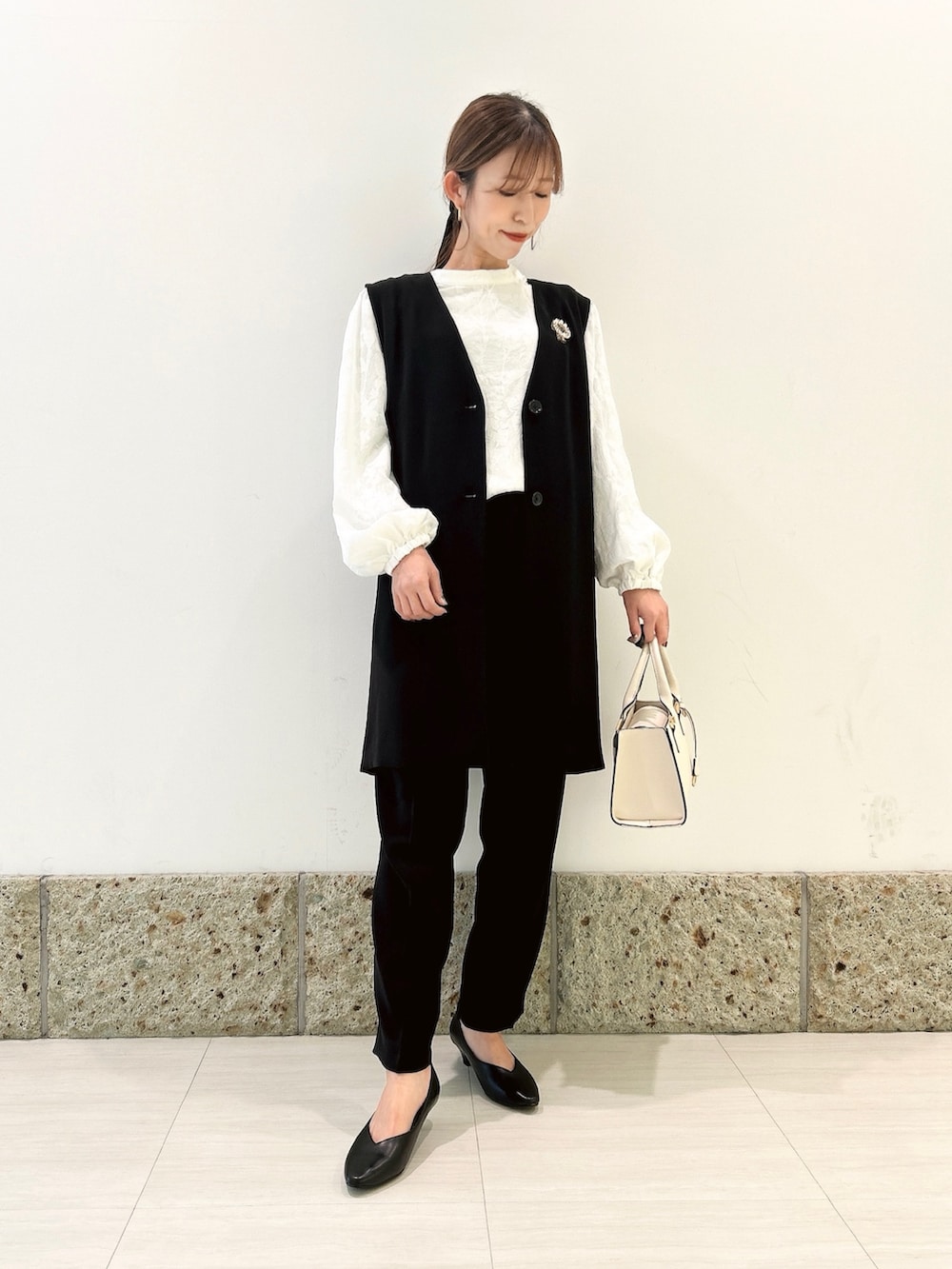 今回は胸元にブローチを付けて華やかさをプラスしました✨