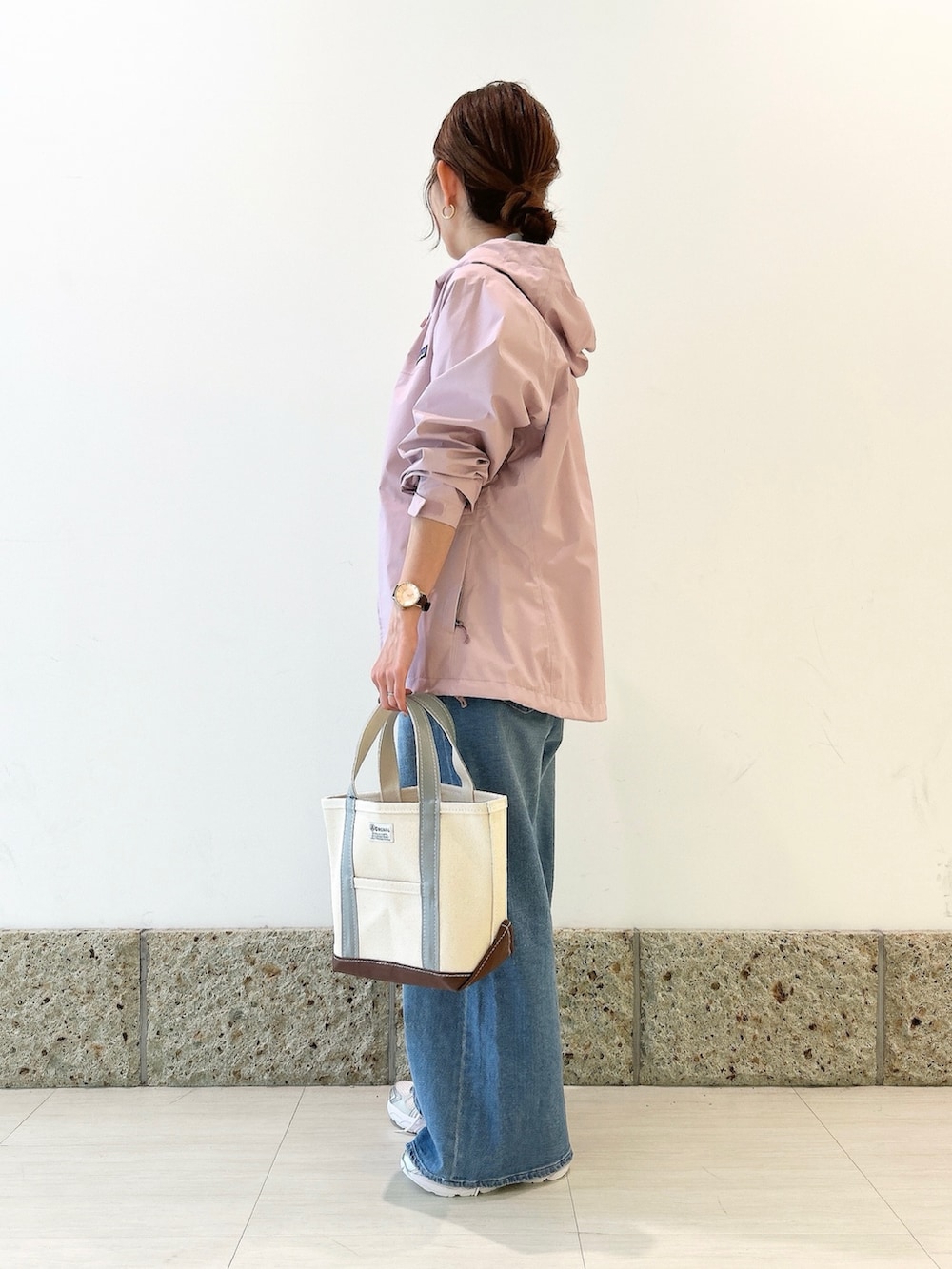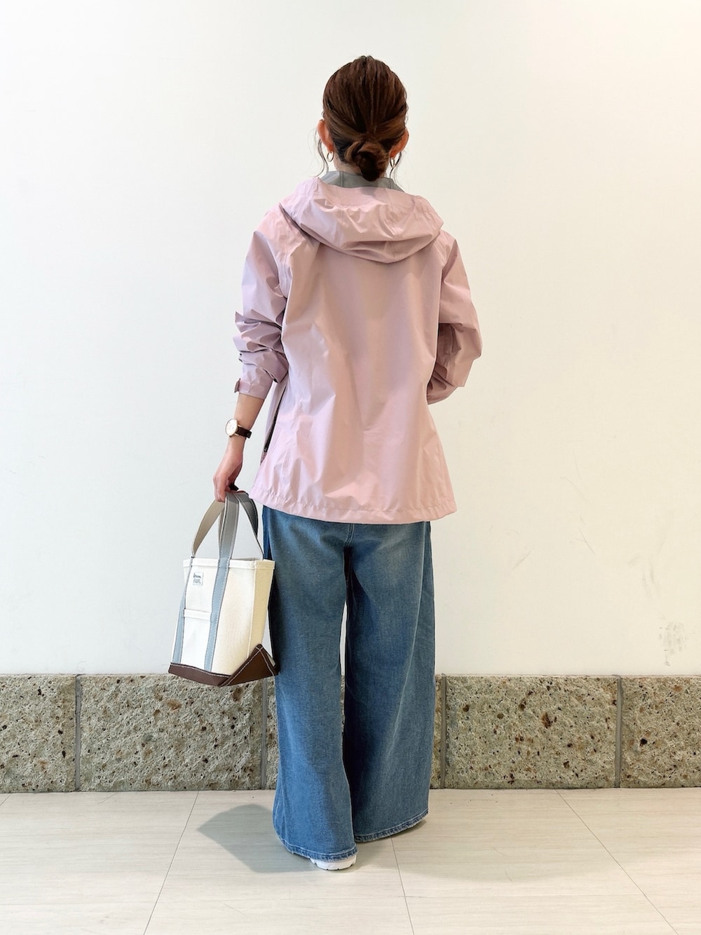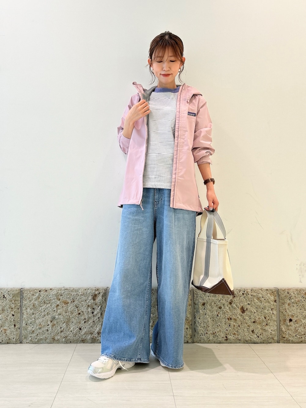 ボトムにはワイドデニムを。