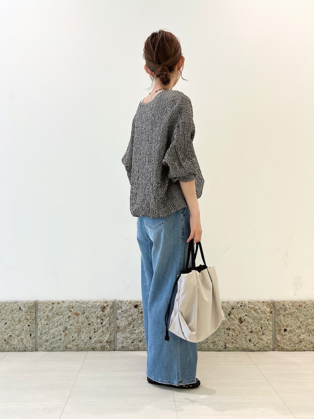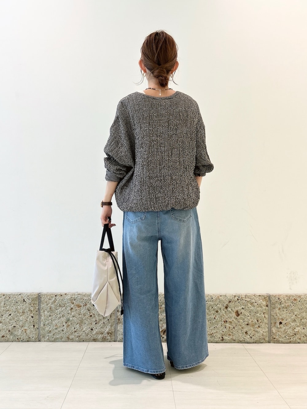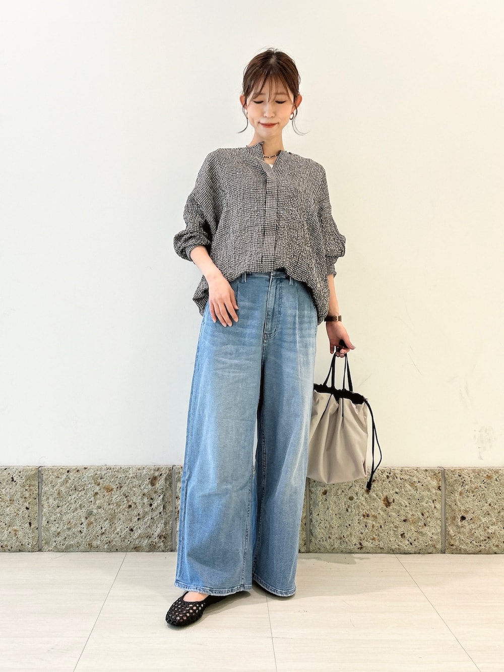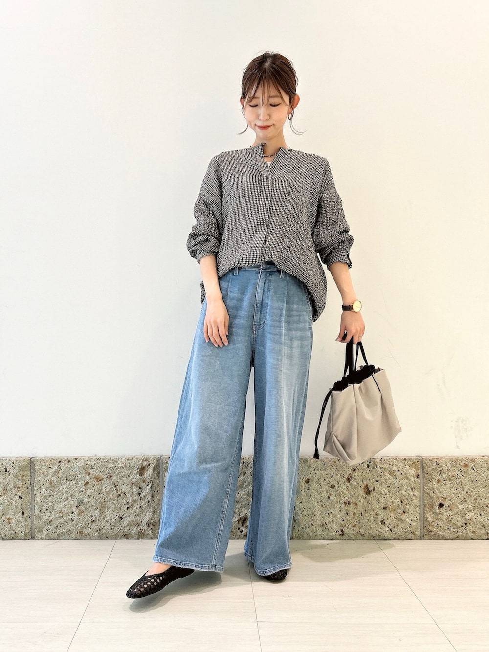 ボトムにはURのワイドデニムを。