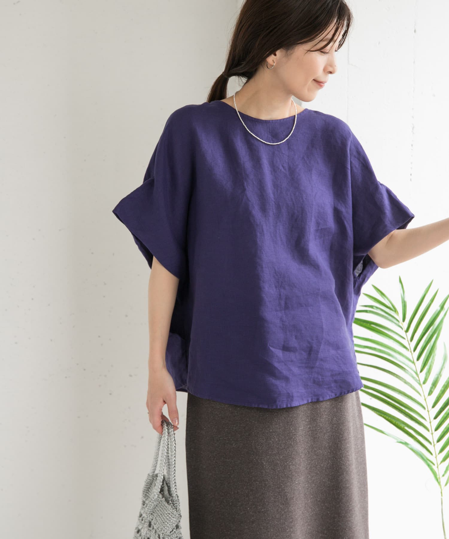 深みのあるブルーのカラーが大人可愛いこちらのブラウス。