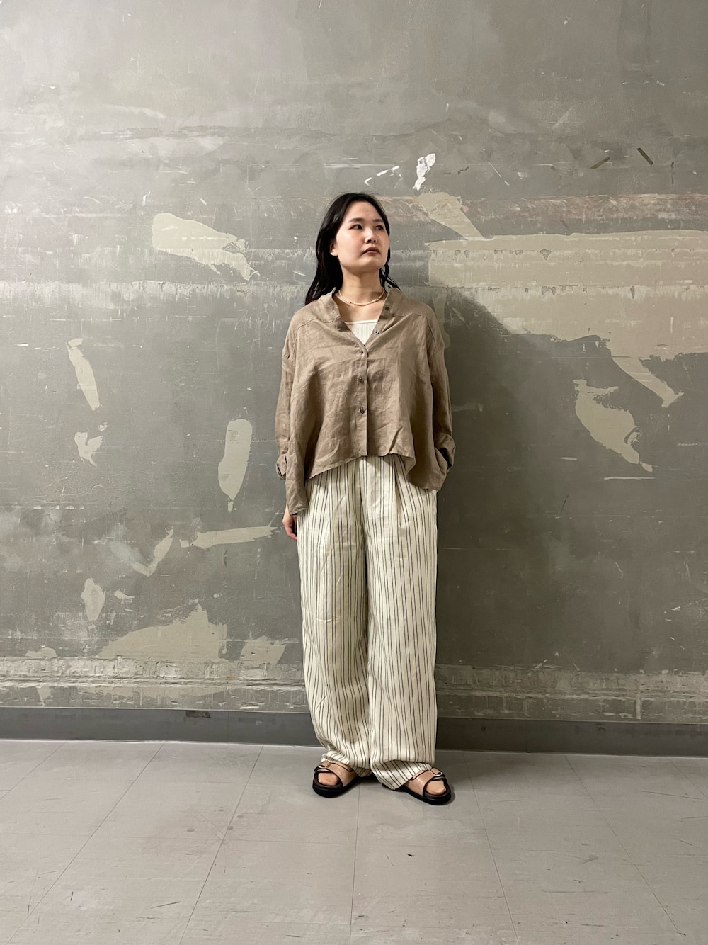 シャツのきちんと感とカーディガンの柔らかさを兼ね備えた1枚で、軽く羽織るだけで雰囲気が出ます。