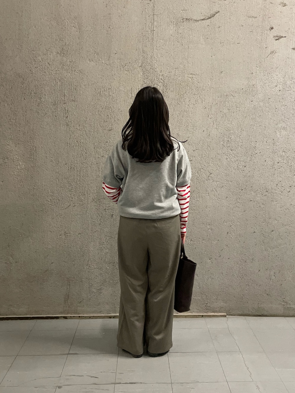 赤ボーダーのロンTをチラっと覗かせたのが拘りです🫣