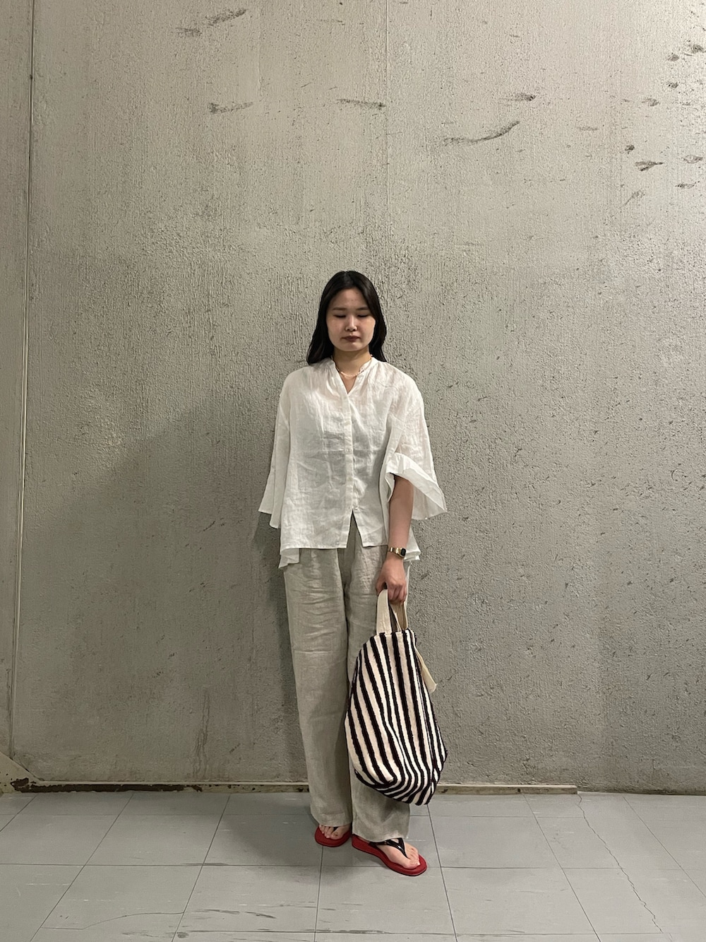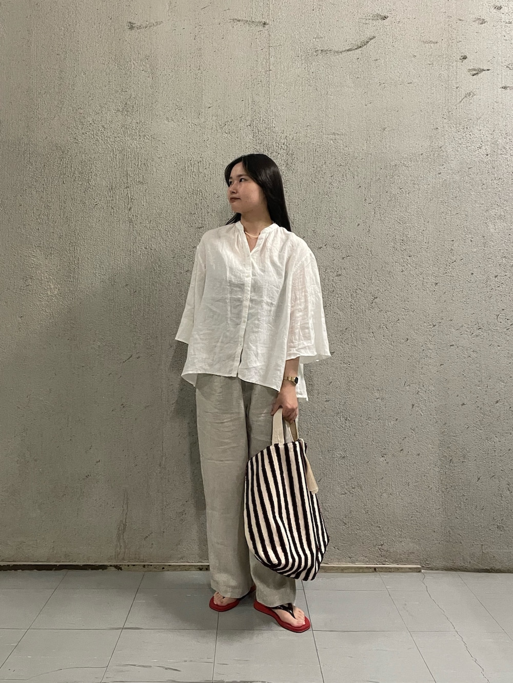 素材とカラーのトーンを揃えて、落ち着いた大人のリラックススタイルに🌴