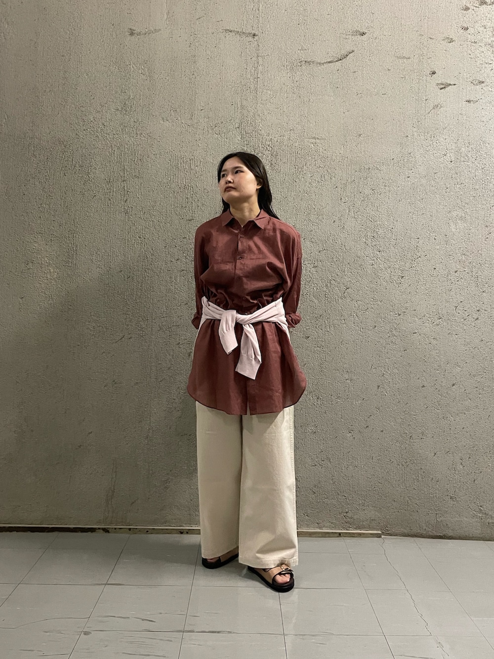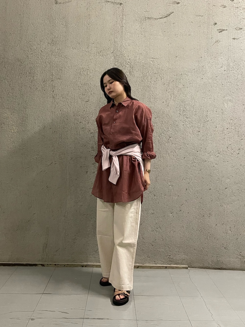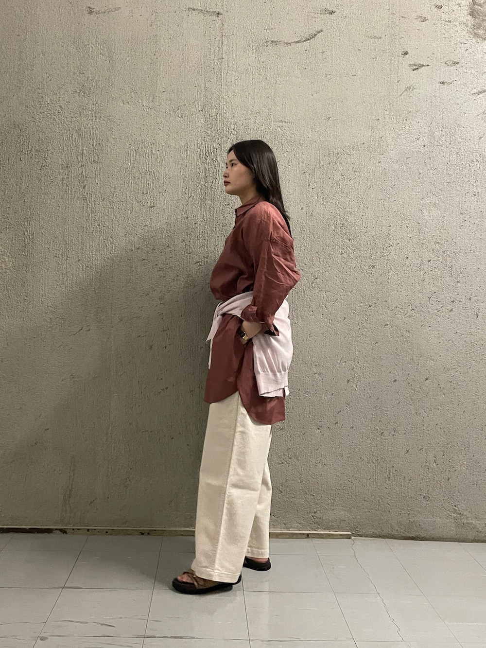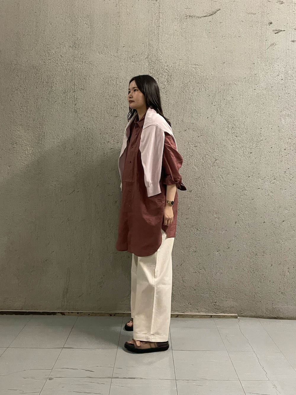 ボトムはあえてワイドなシルエットを選び、抜け感のあるバランスに◎