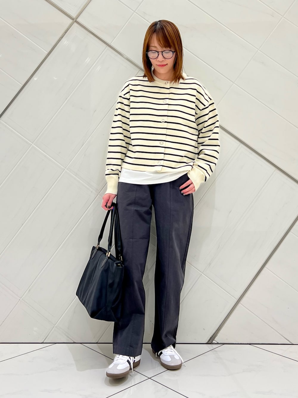 ボトムは足首が見える9分丈でトップスインした時もすっきり見えます。