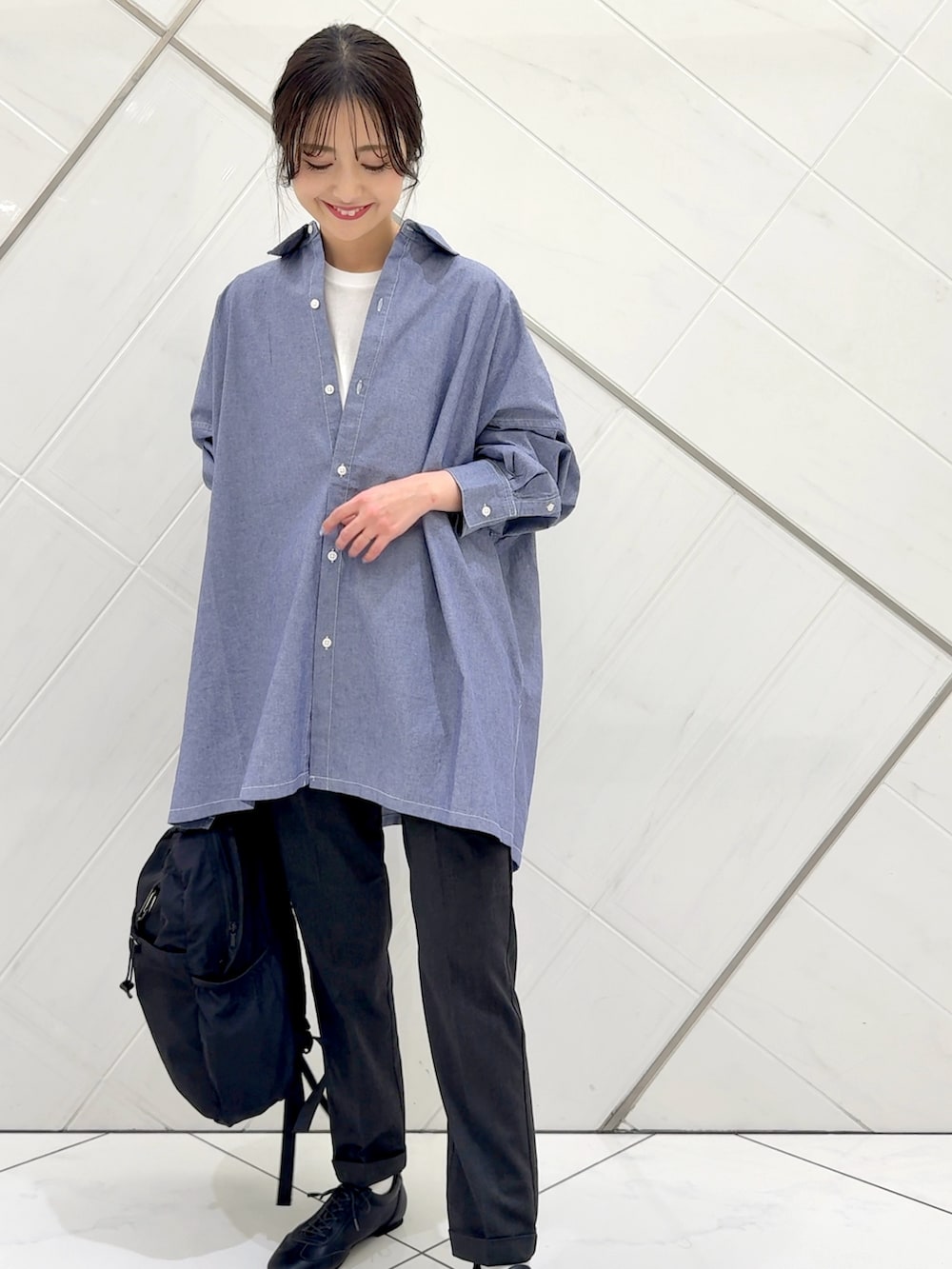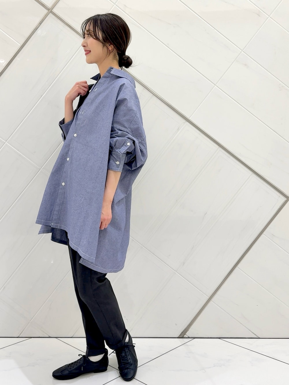 細身のボトムを合わせてメリハリのあるスタイリングにしてみました。