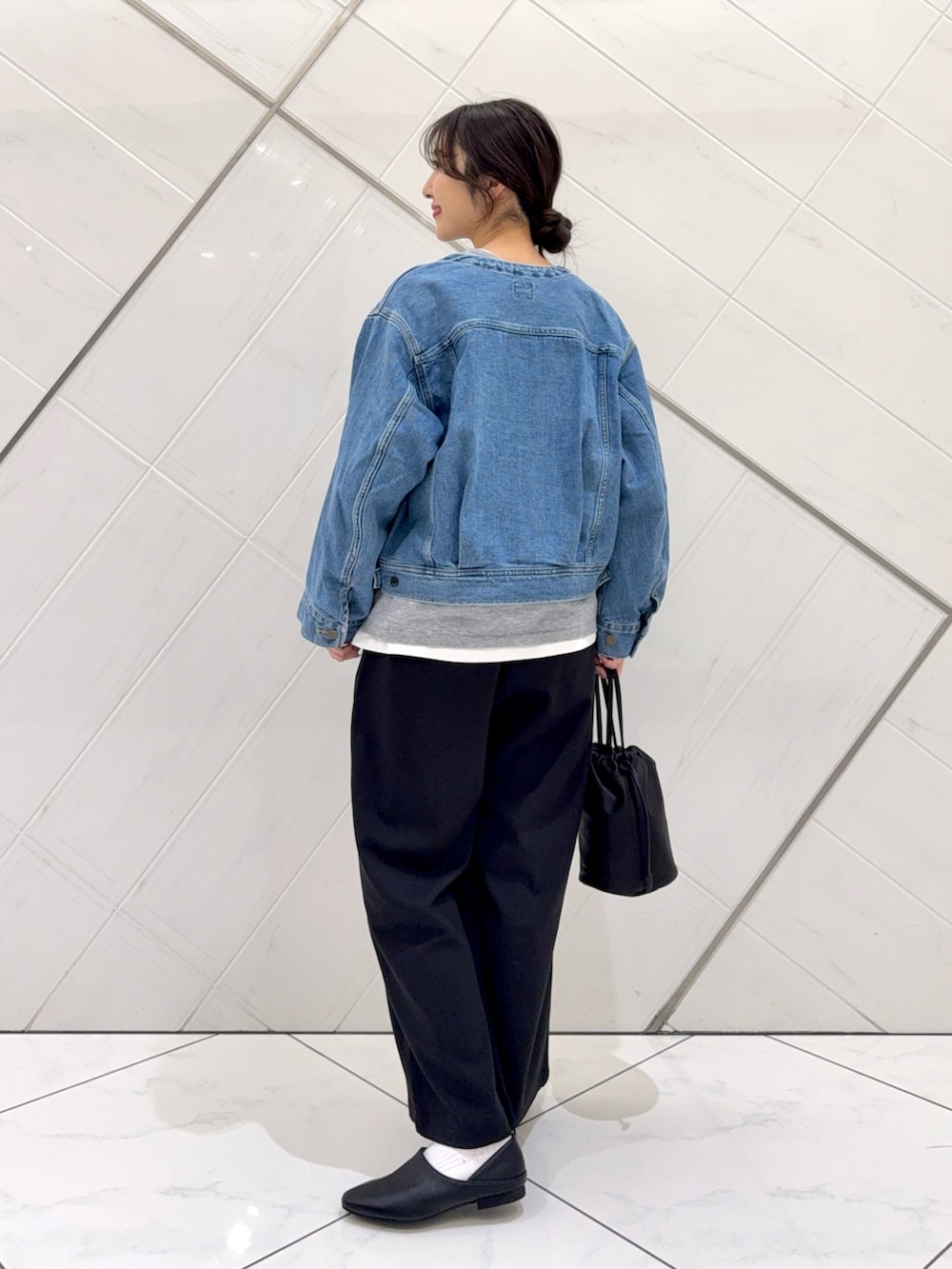 ジャケットが腰上の短丈なのでボトムスとのバランスも取りやすく、丸みのあるシルエットが可愛いです。