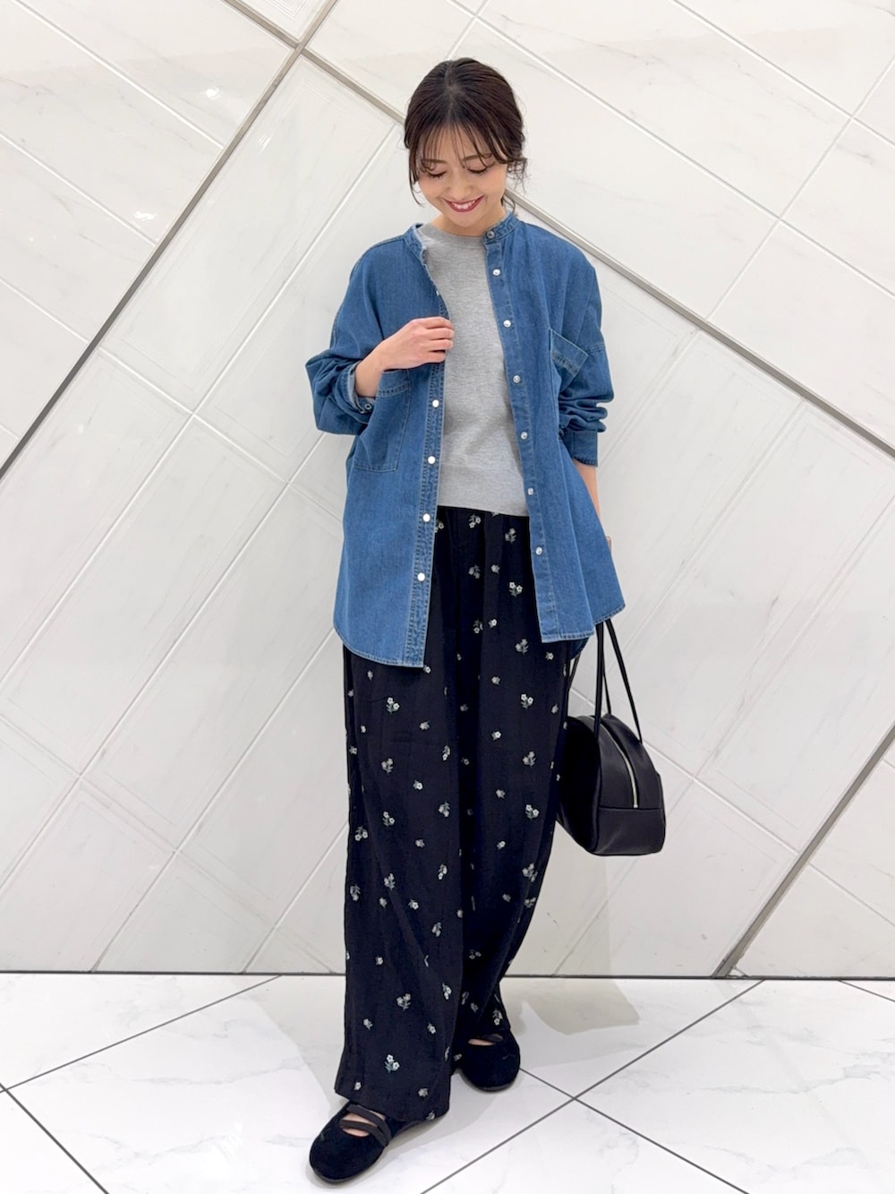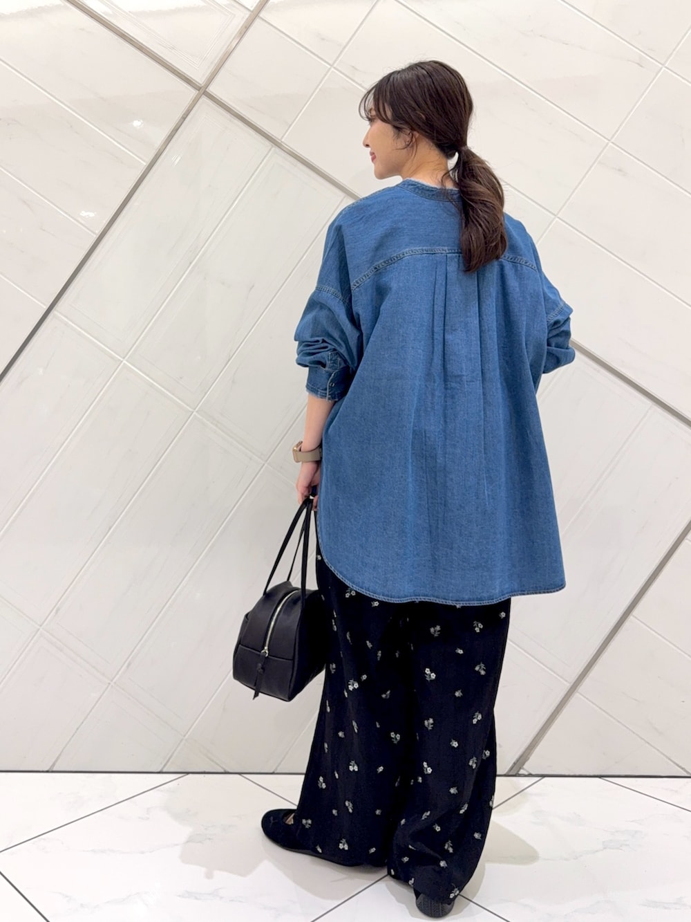 デニムシャツはプライベートでも愛用しているアイテムでゆったりとしたサイズ感ですが、落ち感があり、薄手なのでシーズン長く着用できます。