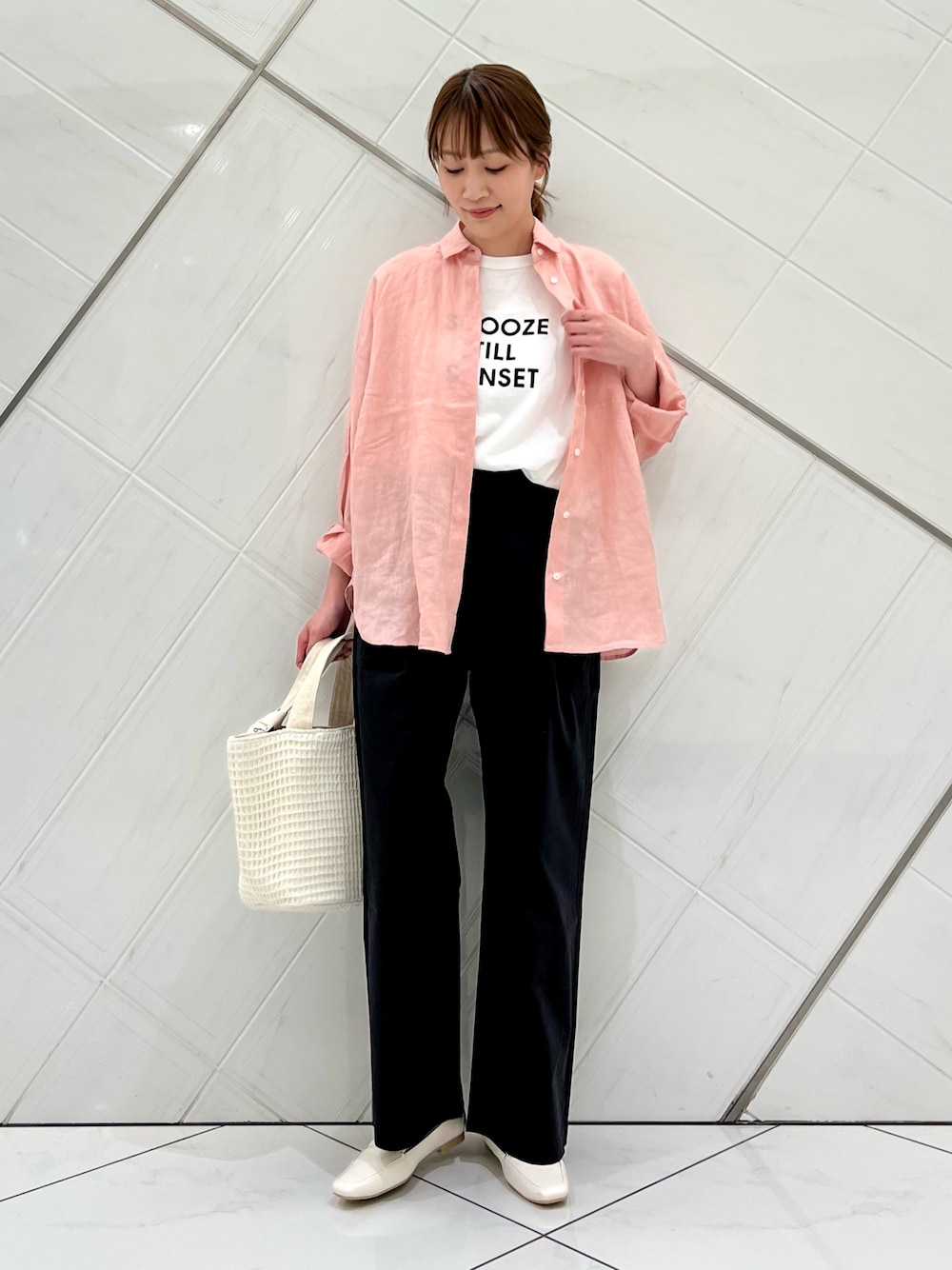 合わせるボトムによって、トップスインするのも出して着るのもまた雰囲気変わって楽しめます。