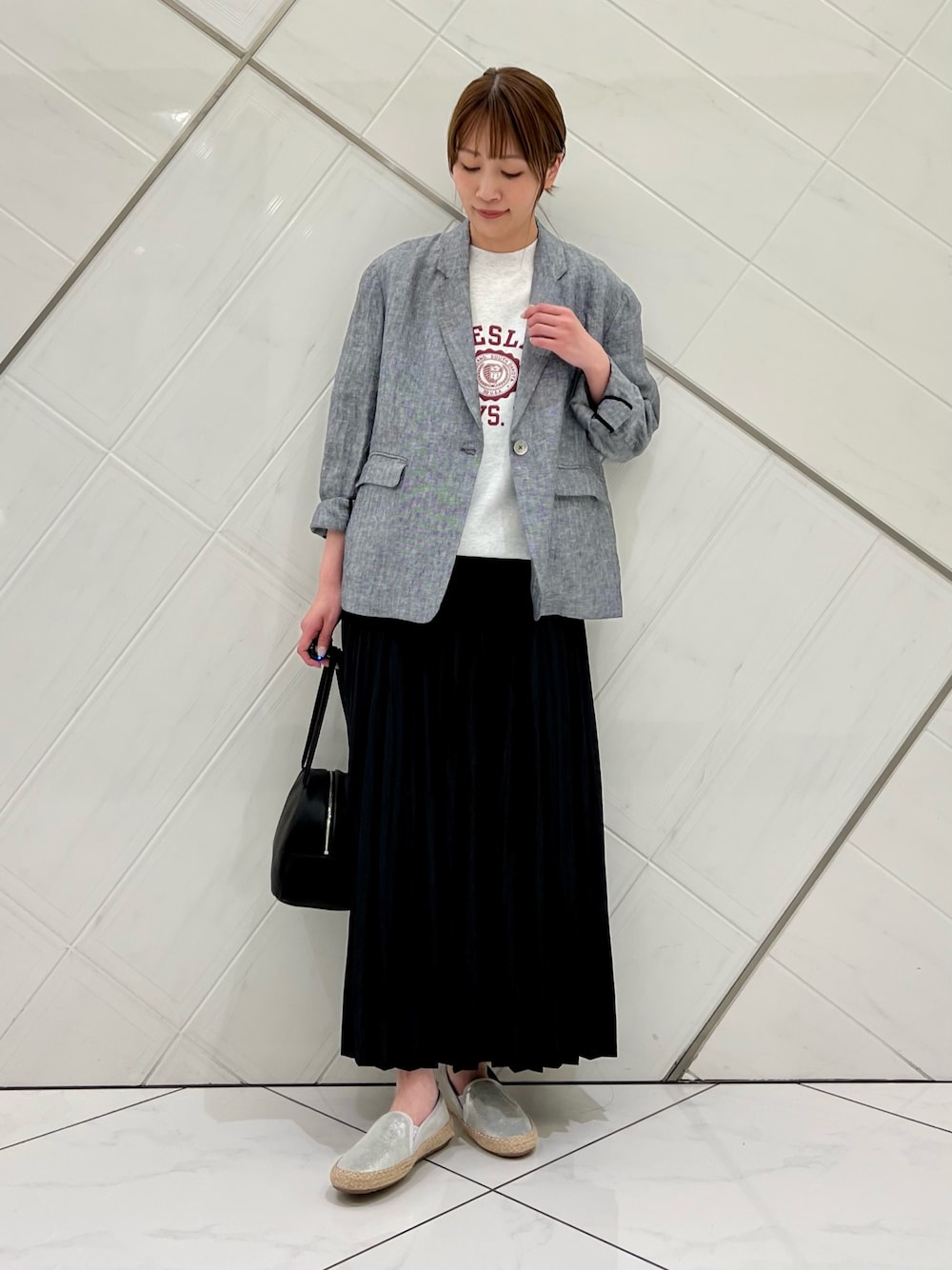 ブラウスはリアルバイのアイテムで、柔らかな肌触りでさらっとした軽い着心地です。