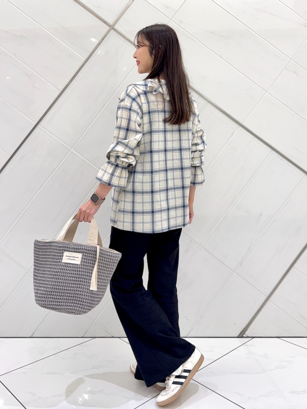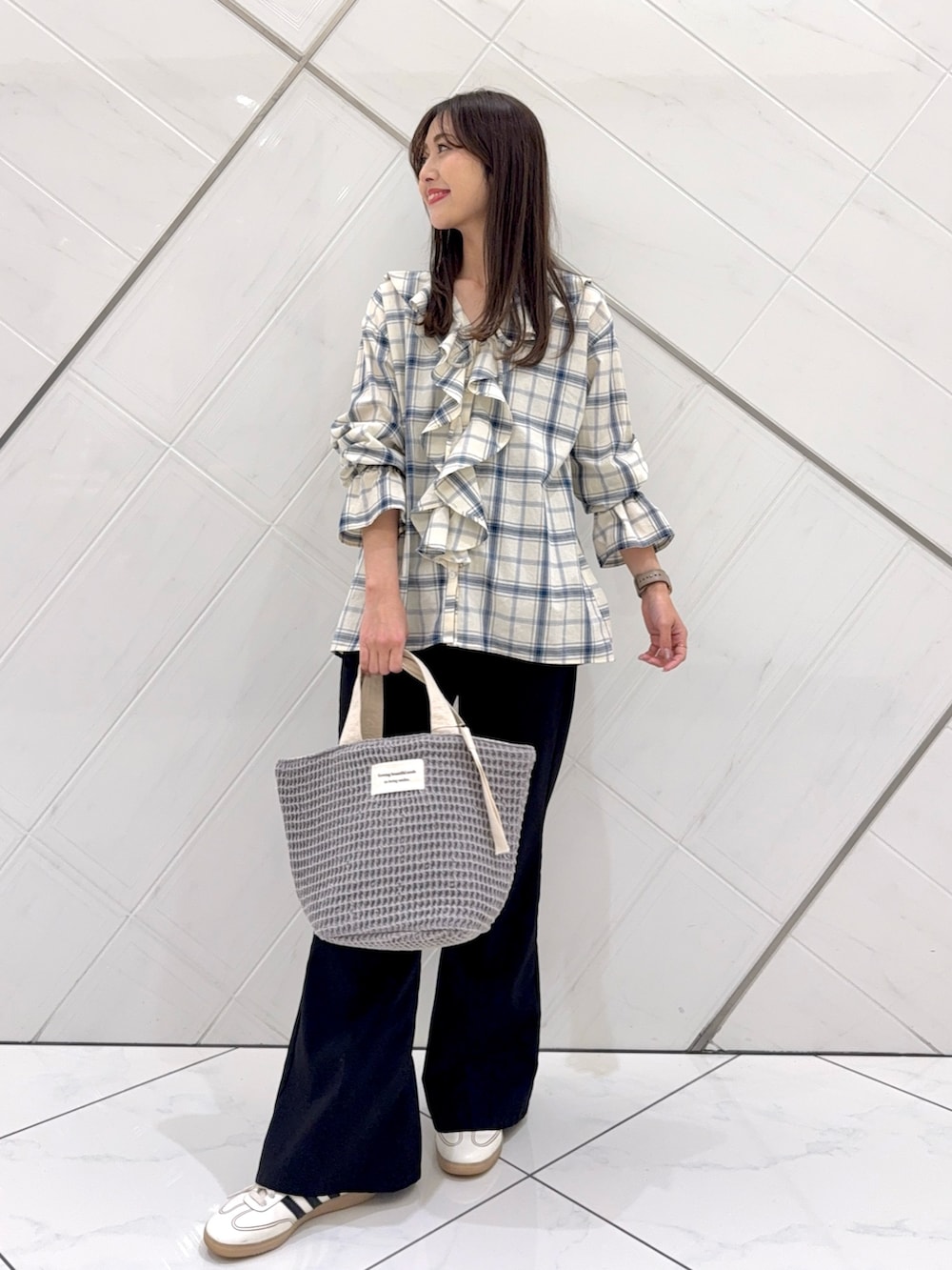 チェックフリルブラウス