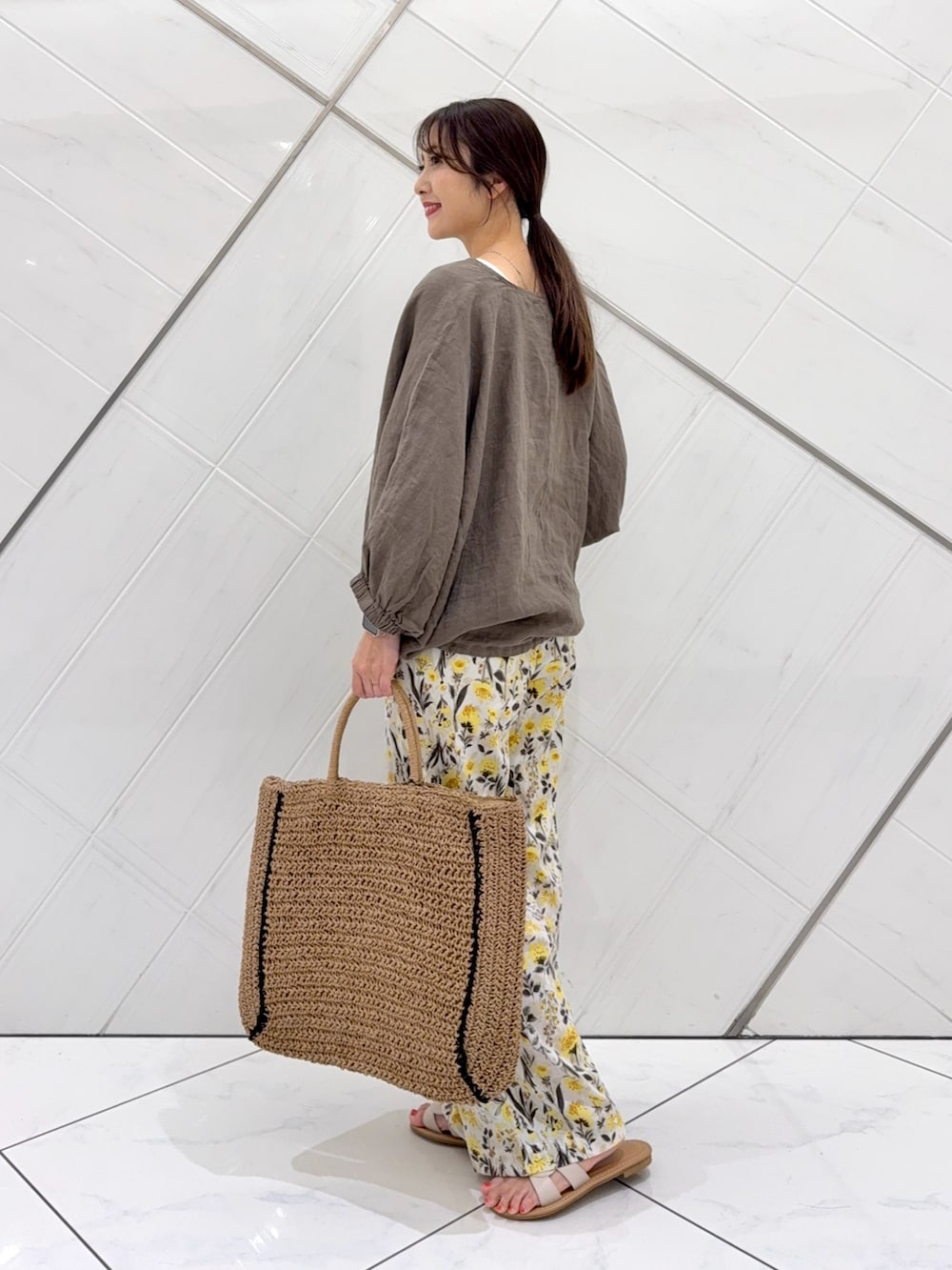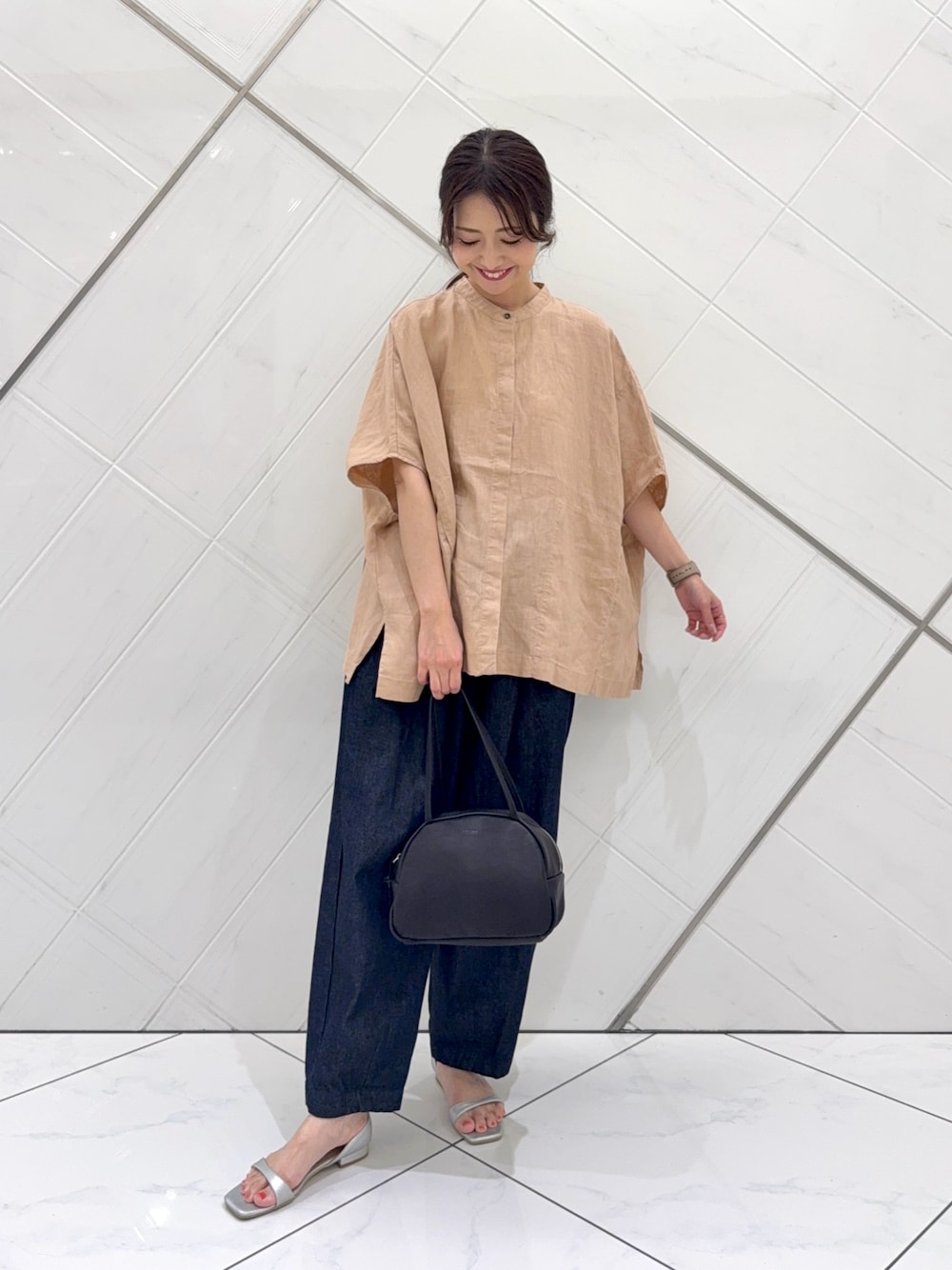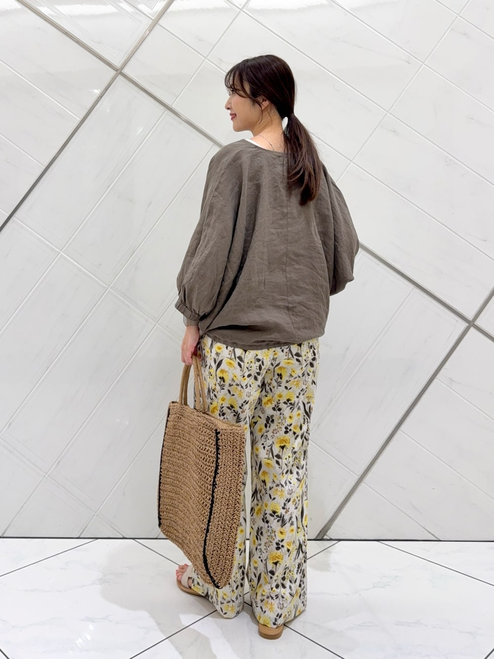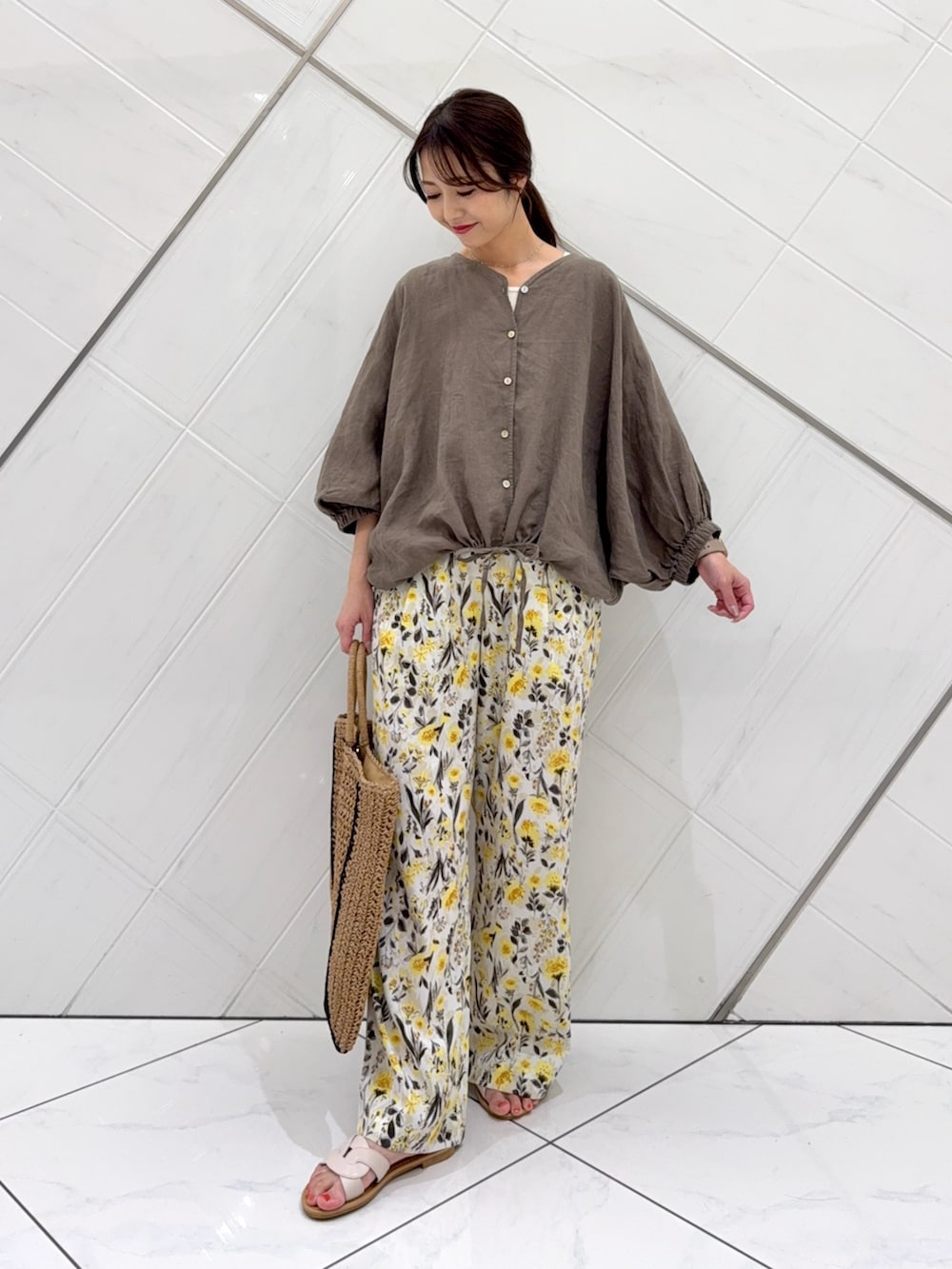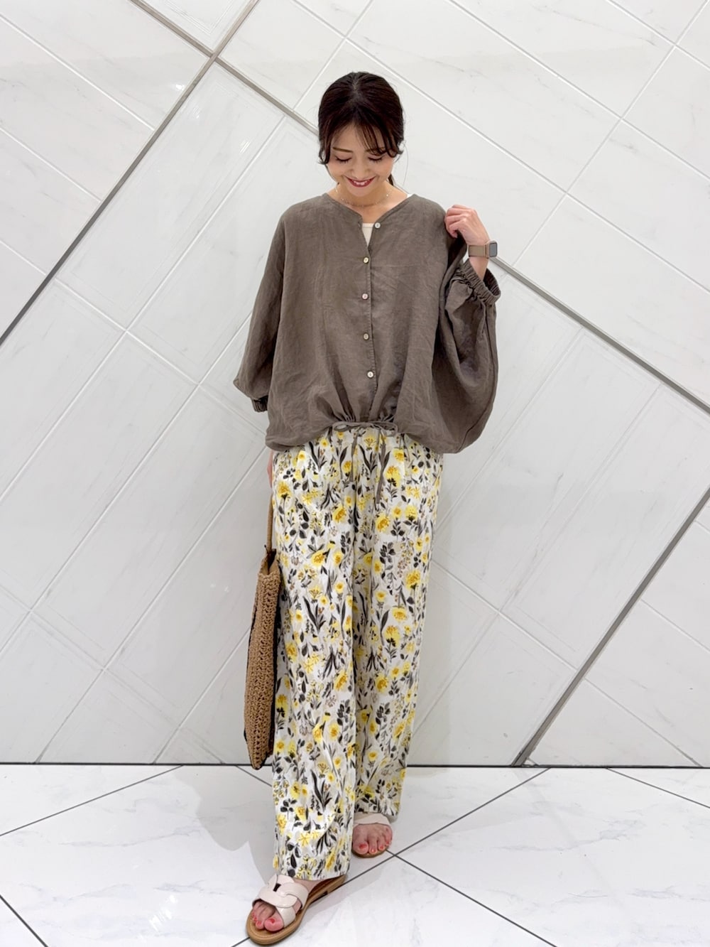 大人気のリネンブラウスを主役に今私がハマっているブラウン✖️イエローで組み合わせてみました。