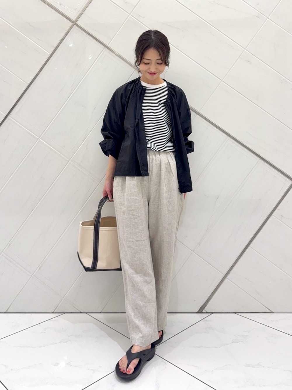トップスは柔らかなリネン素材で着心地も良く、涼しいので真夏も着やすいです。