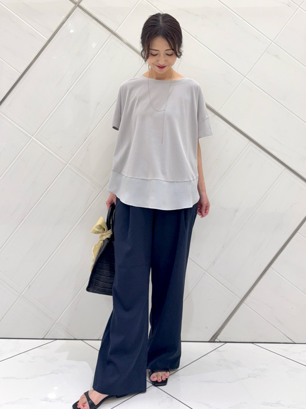 ボトムはてろっとした落ち感のある生地でさらさらとした肌触りなので楽ちんです。