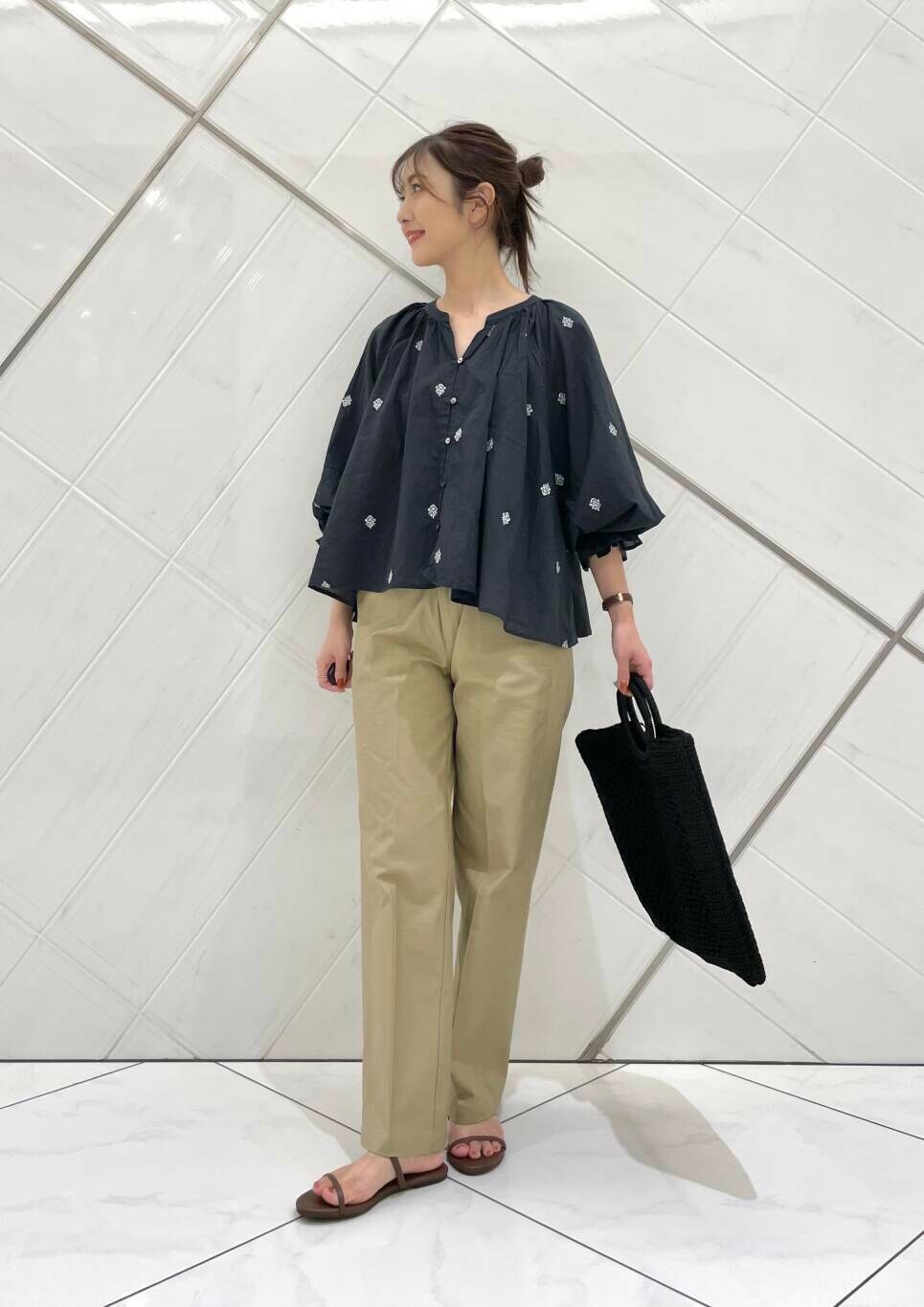 ブラウスはさらっとした軽い着心地で刺繍が可愛らしく、1枚で主役になるアイテムです。