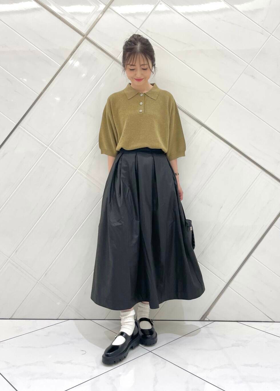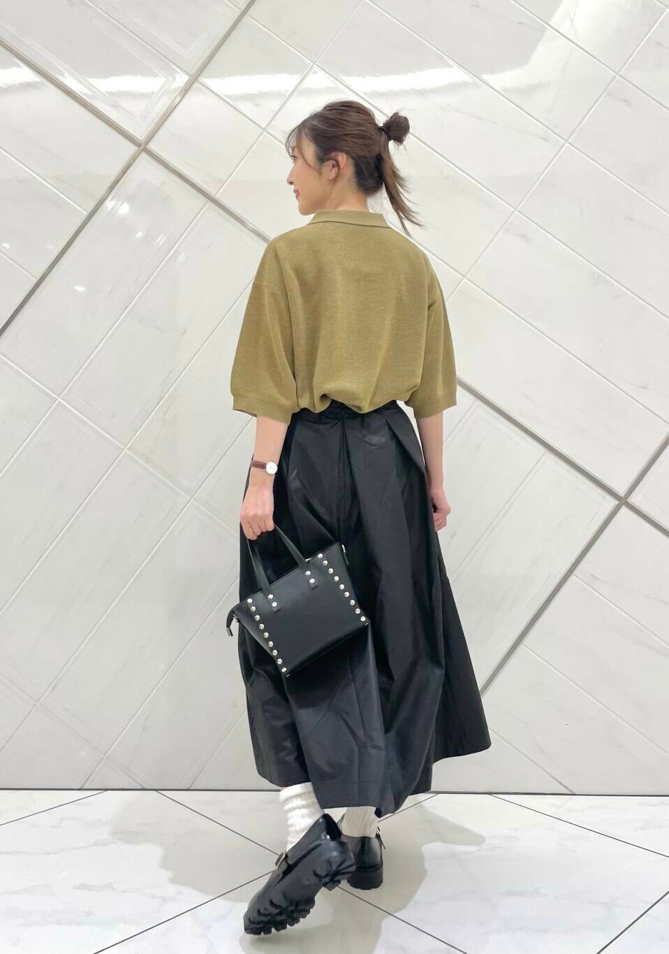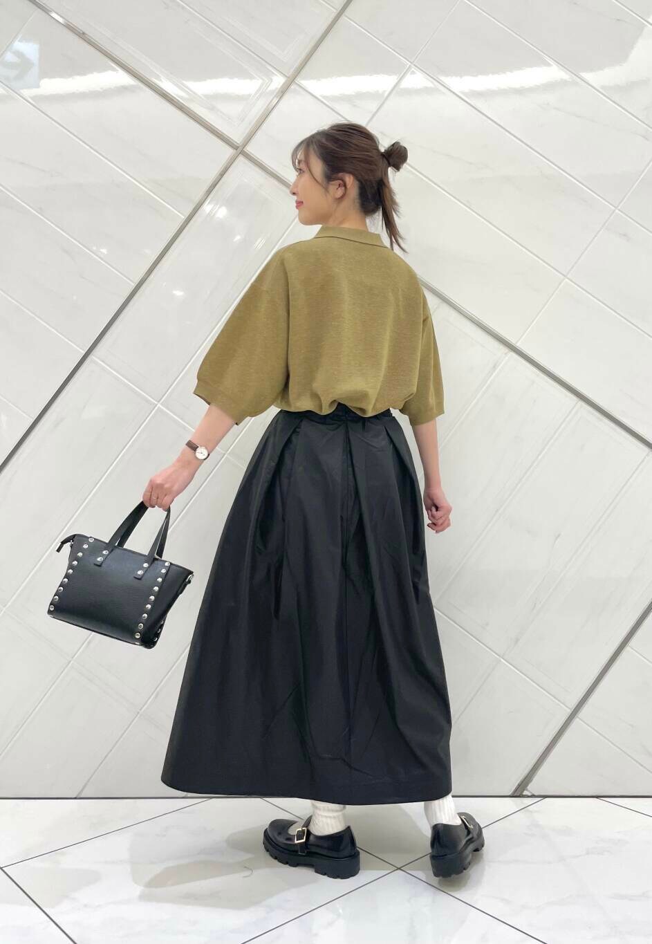 スカートはレザーライクな素材で薄手ながらもハリがあります。