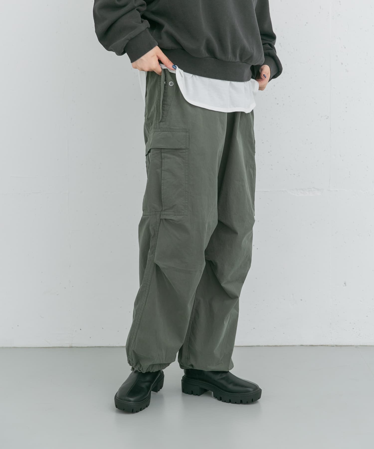 トップスがタイトな分、ボトムスをワイドシルエットのパンツを合わせるとバランスよく見えるのでおすすめです。