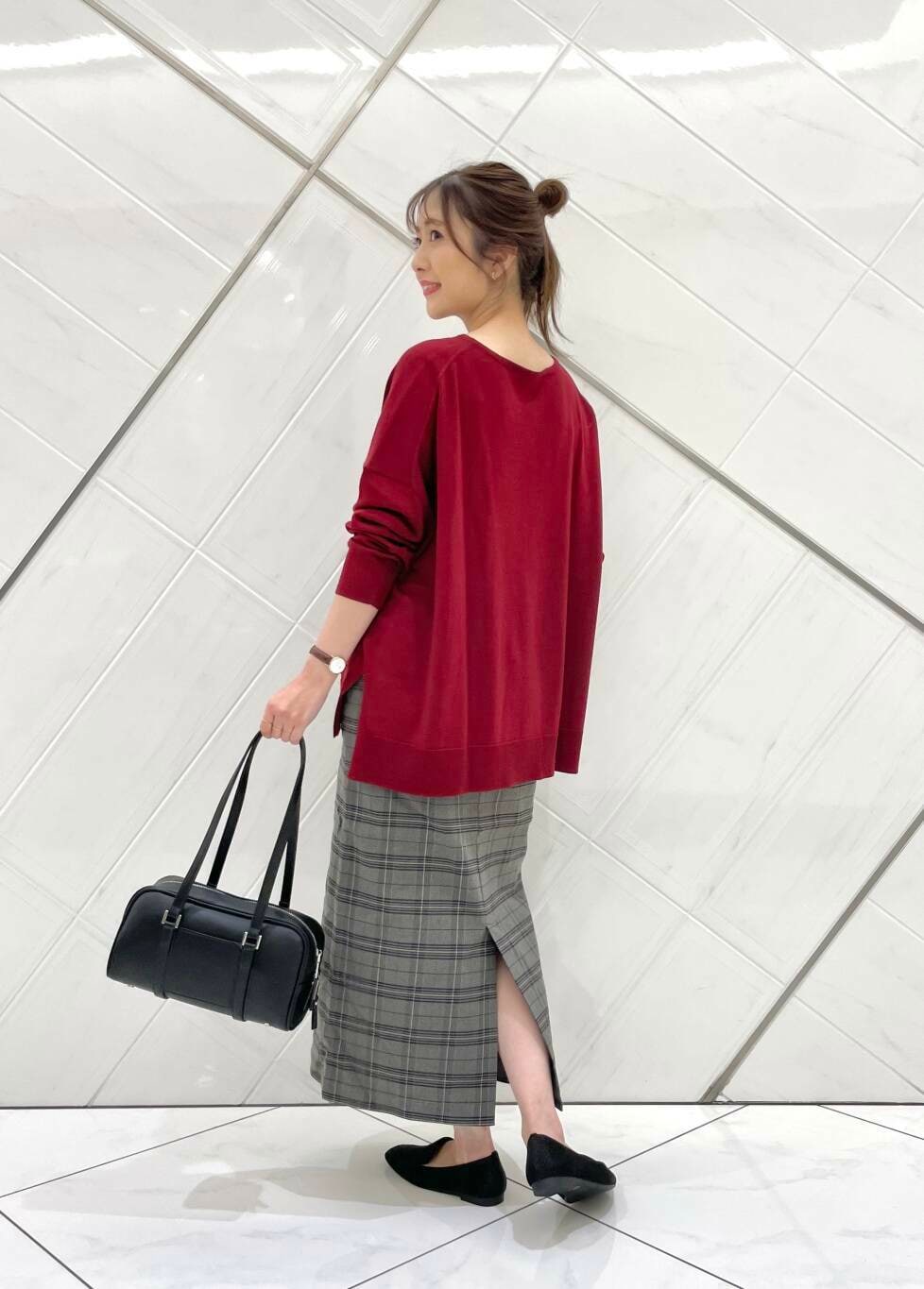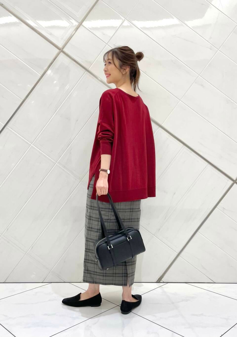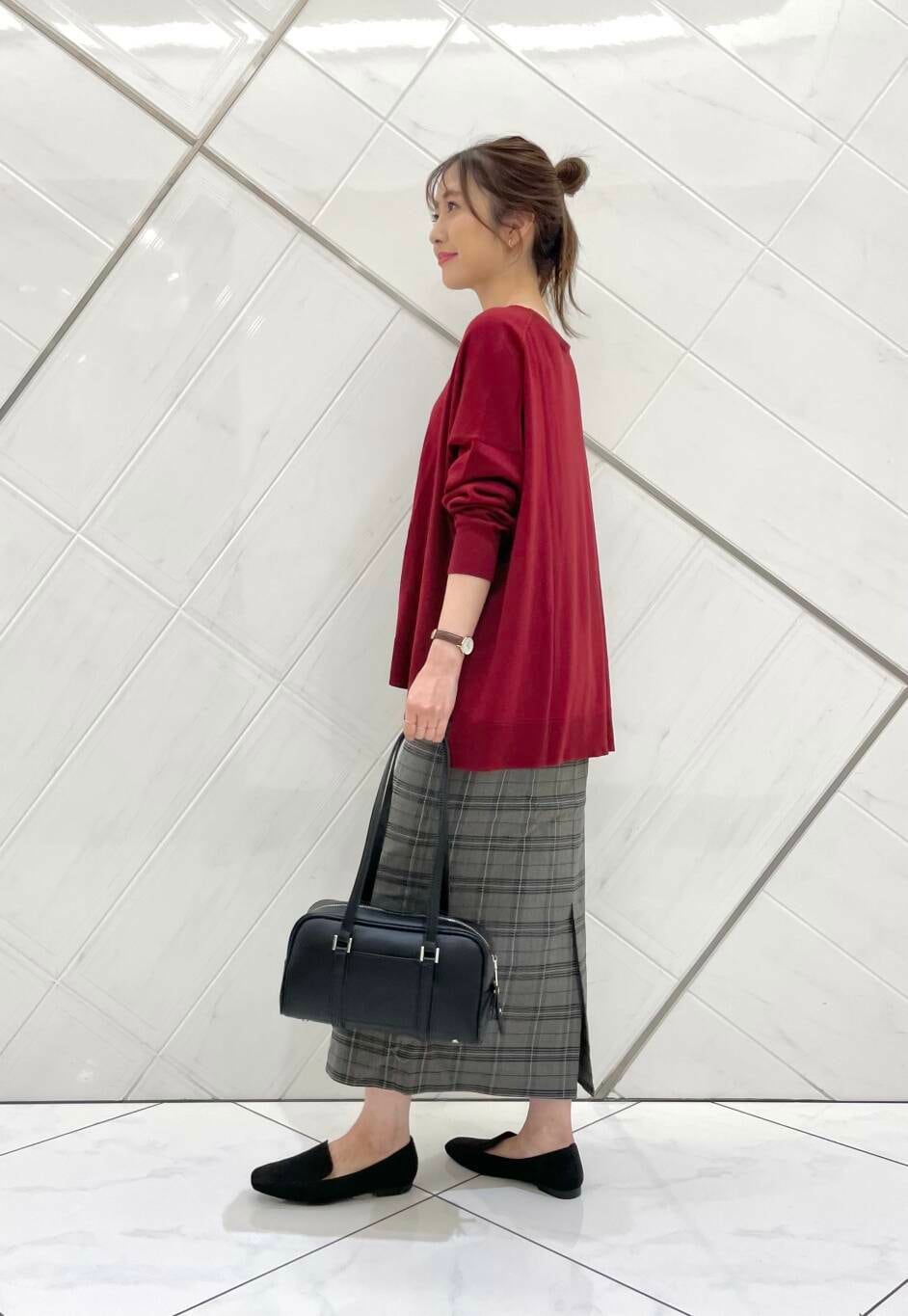 スカートはストレッチの効いた伸びの良い生地で穿き心地も良く、さりげないチェック柄がコーディネートのアクセントになります(^^)