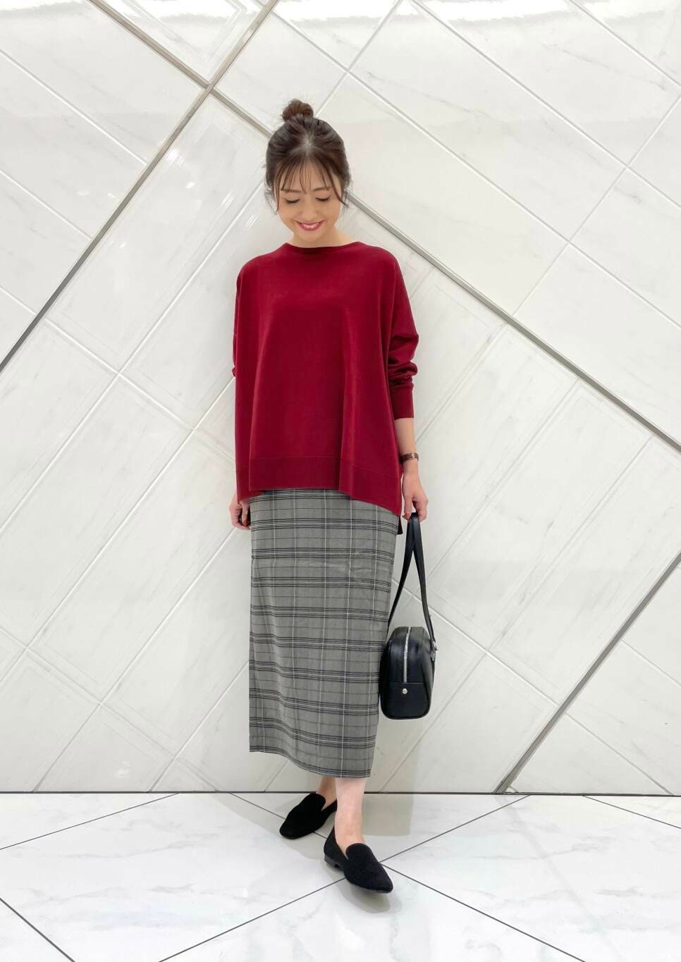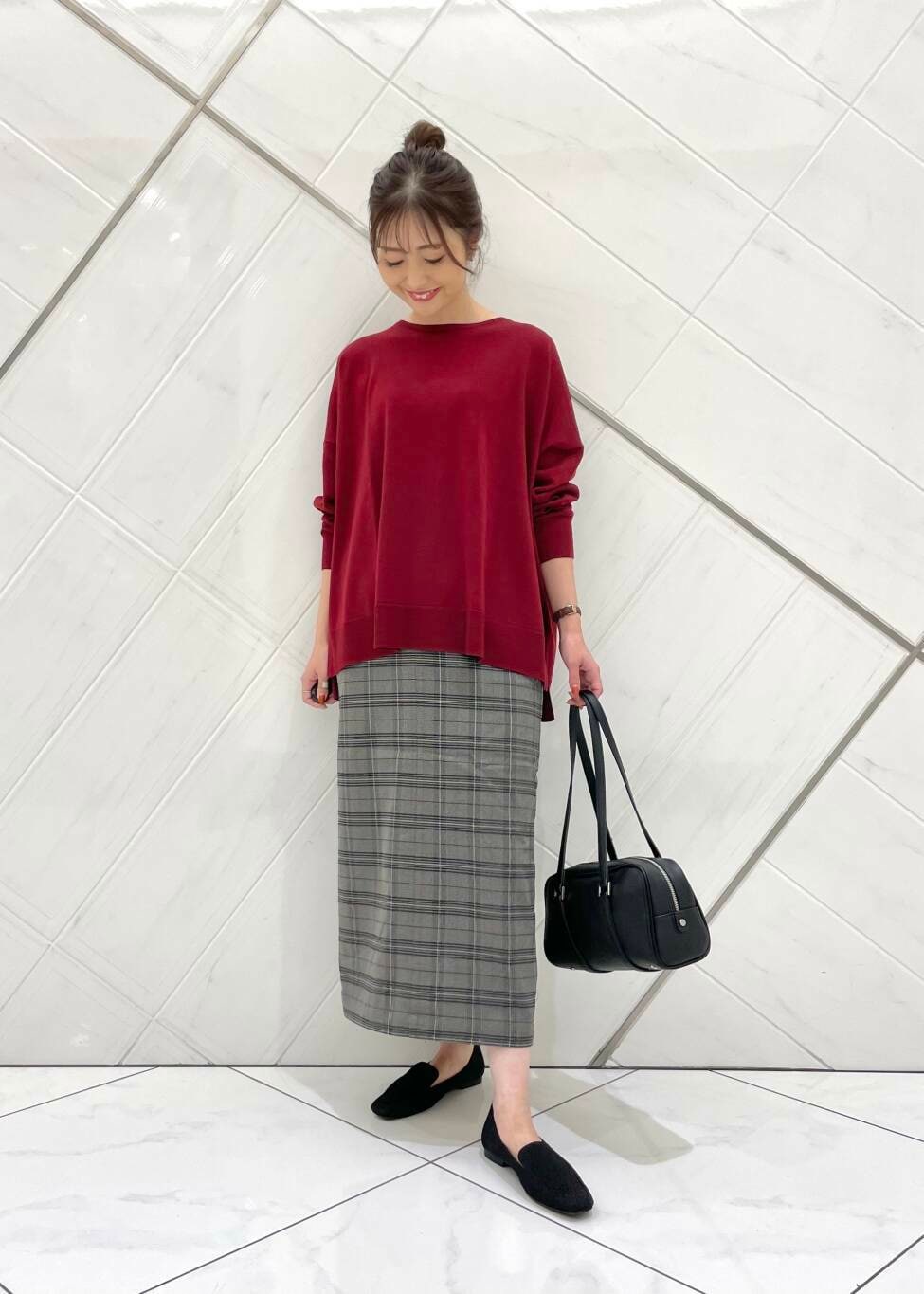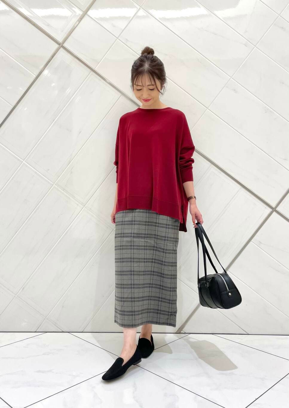 スカートはストレッチの効いた伸びの良い生地で穿き心地も良く、さりげないチェック柄がコーディネートのアクセントになります(^^)