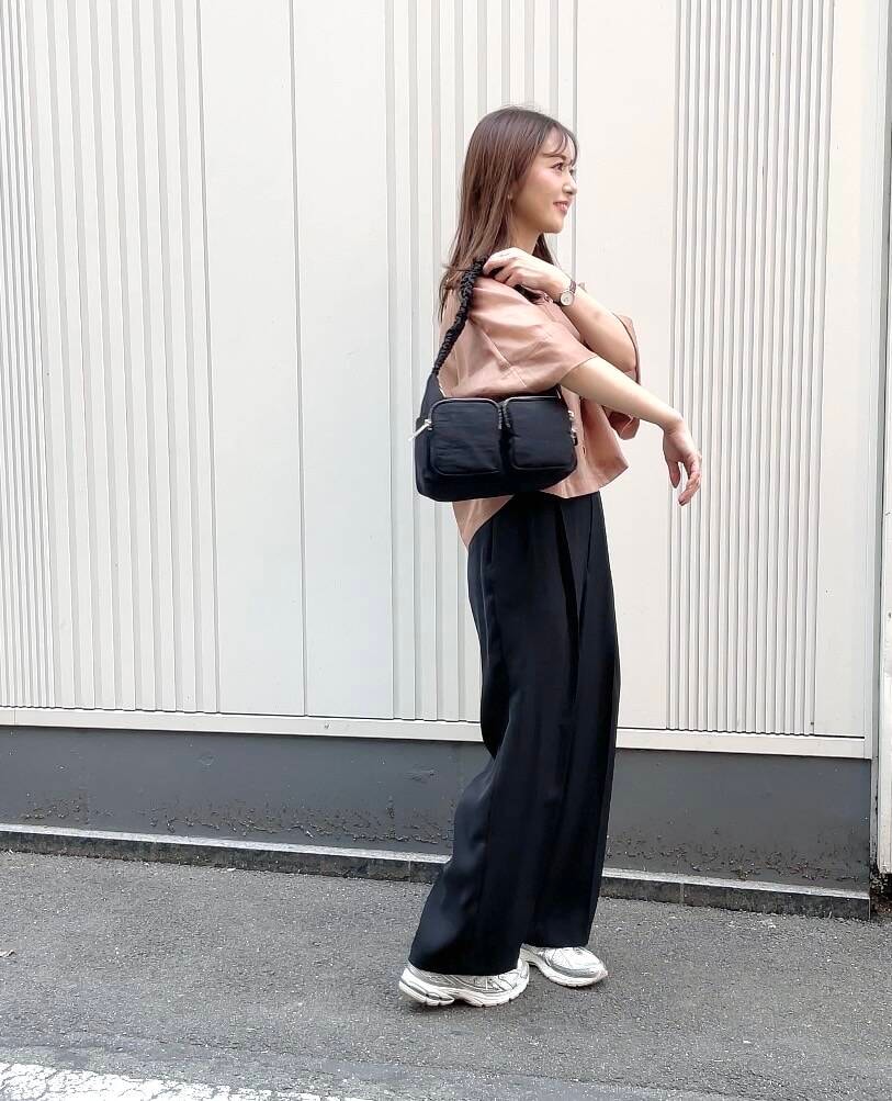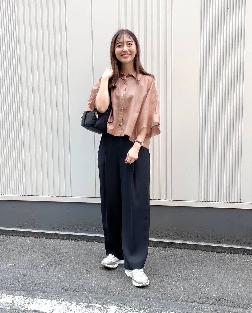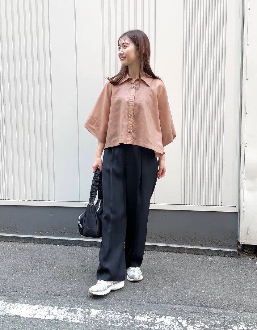 シャツはシアー感のある涼しげな印象でハリのある生地なのできちんと感もあります。