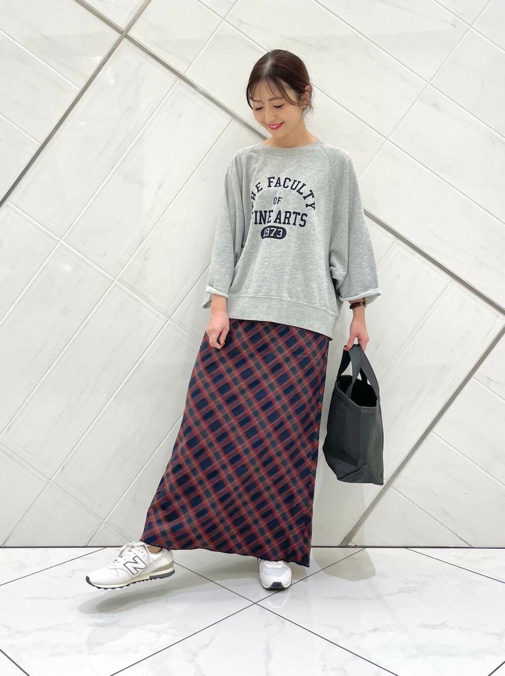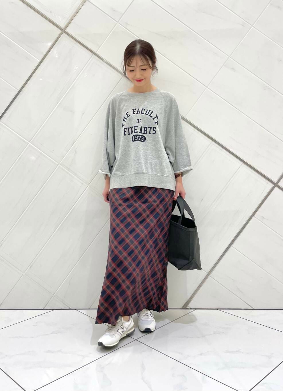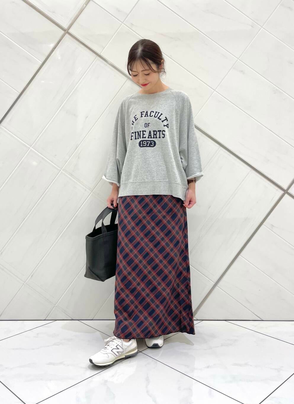 今回はチェックスカートに合わせてみたのですが、スカートはKBFのアイテムで薄手でさらっとした軽い着心地で細めのフレアシルエットなのでスタイル良く見えます(^^)