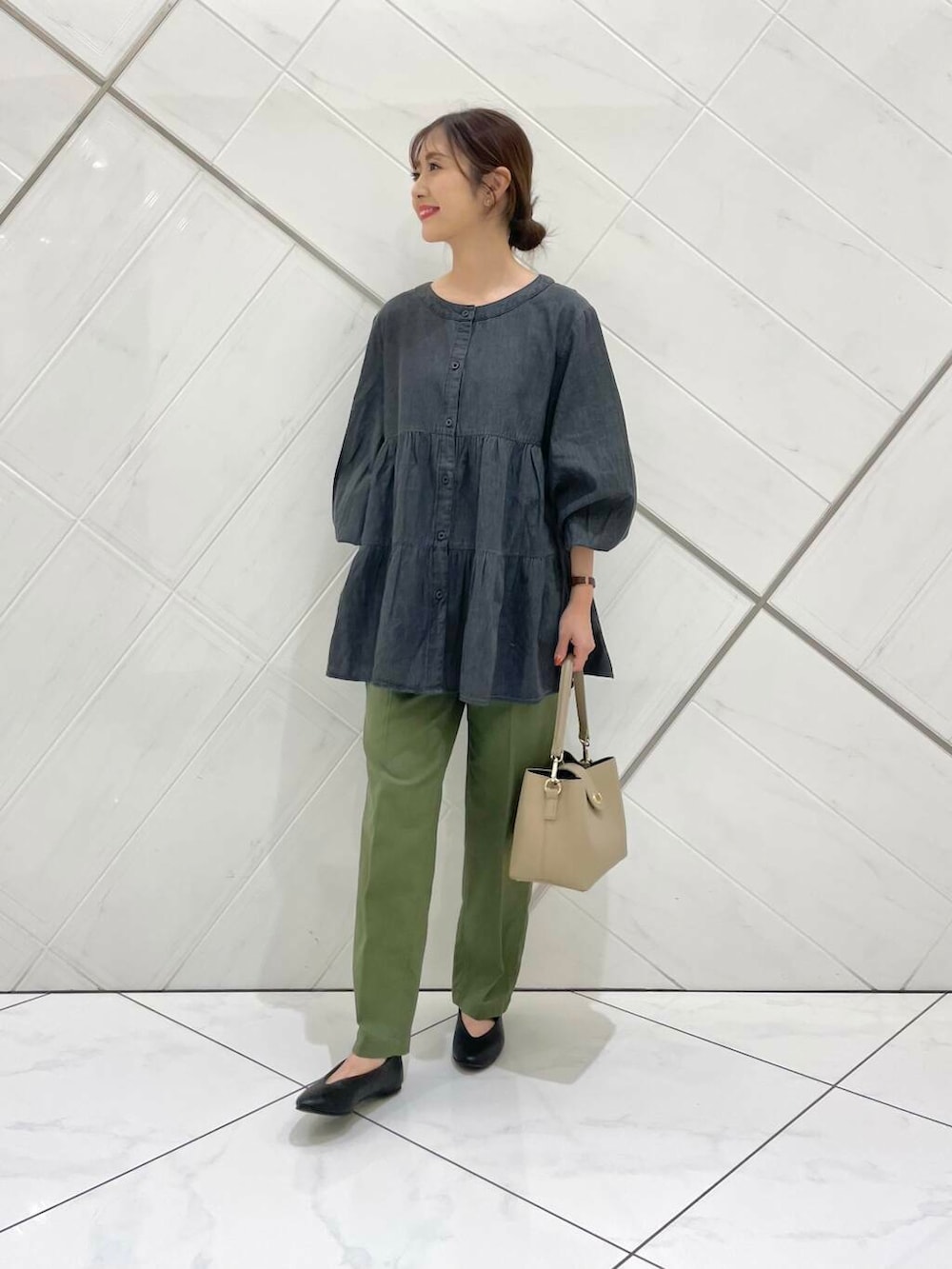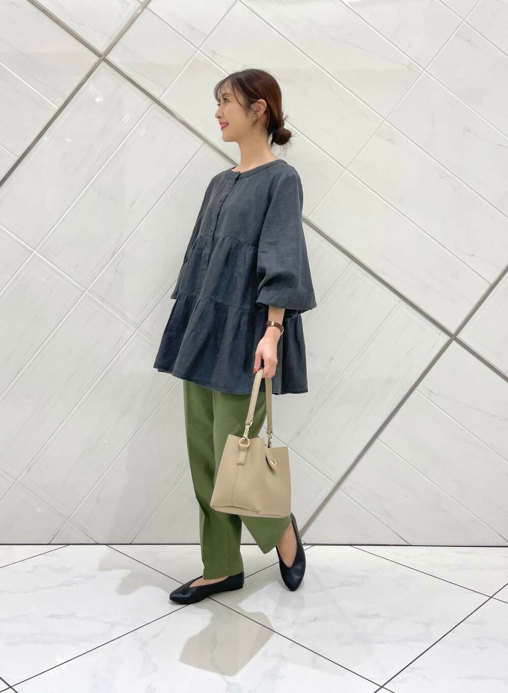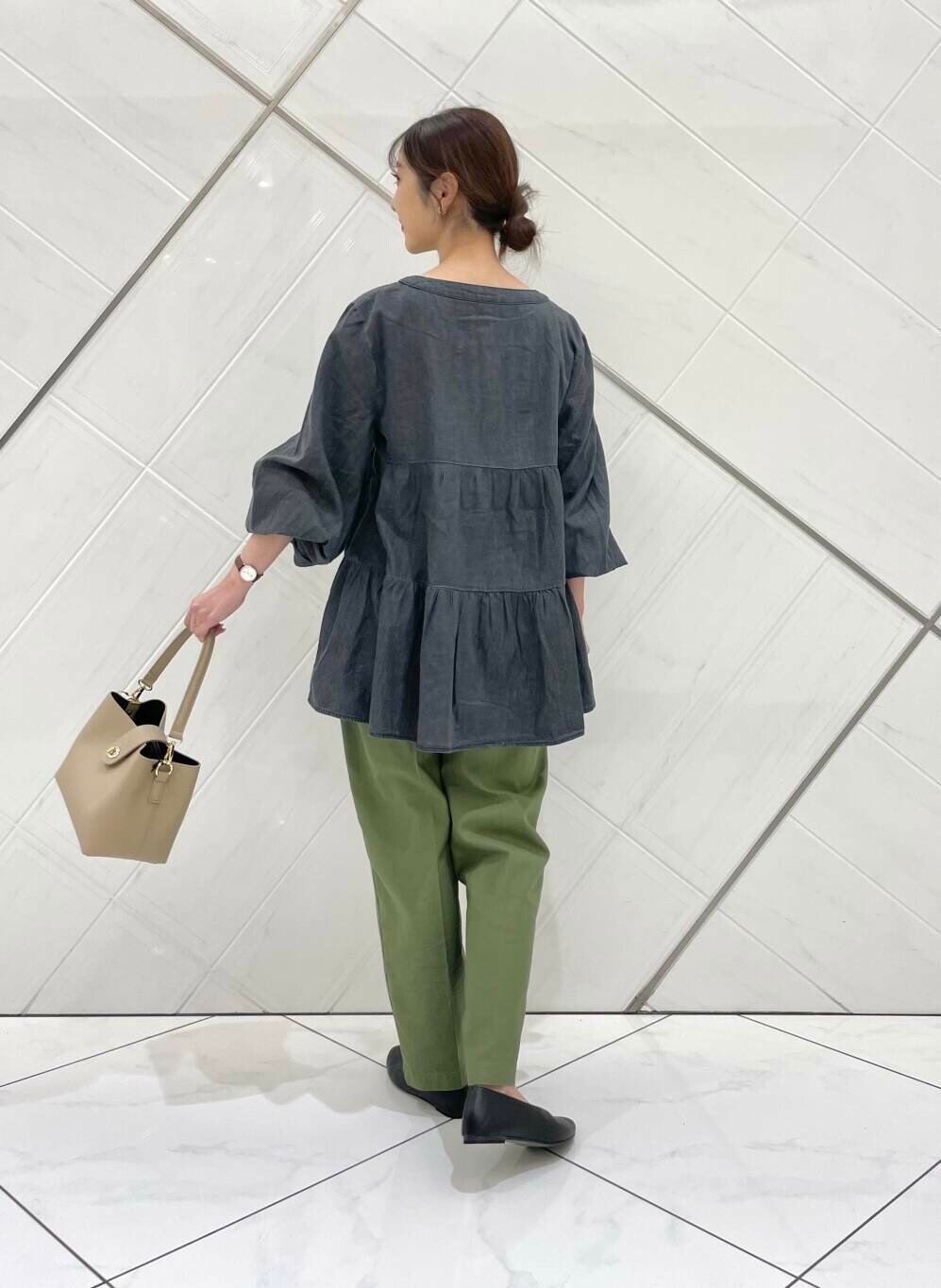 ブラウスは薄手でさらっとした柔らかな肌触りなので着心地も良く、チュニック丈なので腰回りもカバーできます。