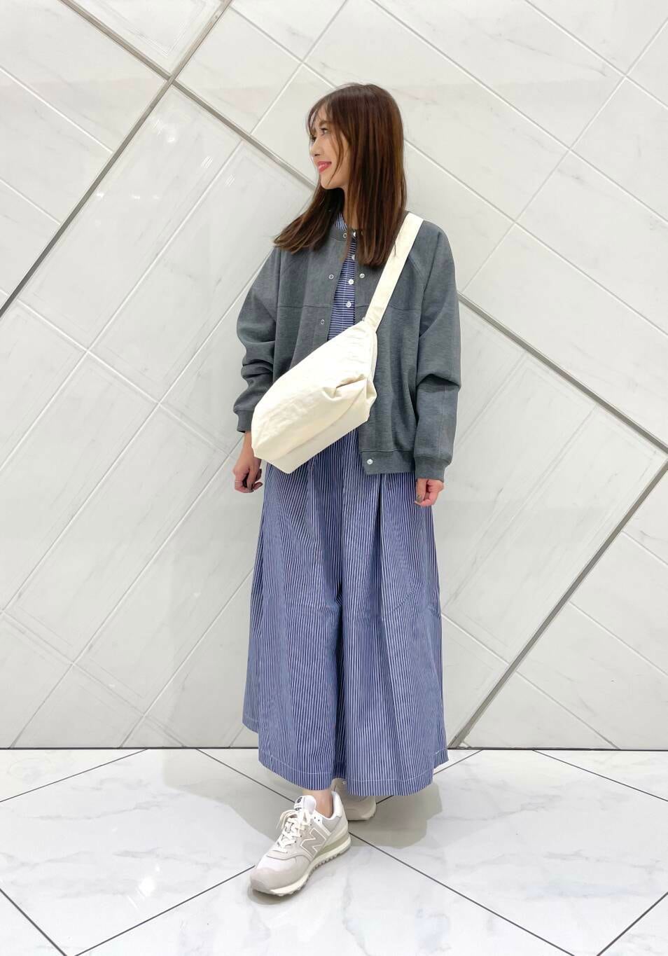 身幅は広めでサイズ1で足首が10cm程上くらいの長めの着丈です。ゆったりとしているのでストレスフリーな着心地です。