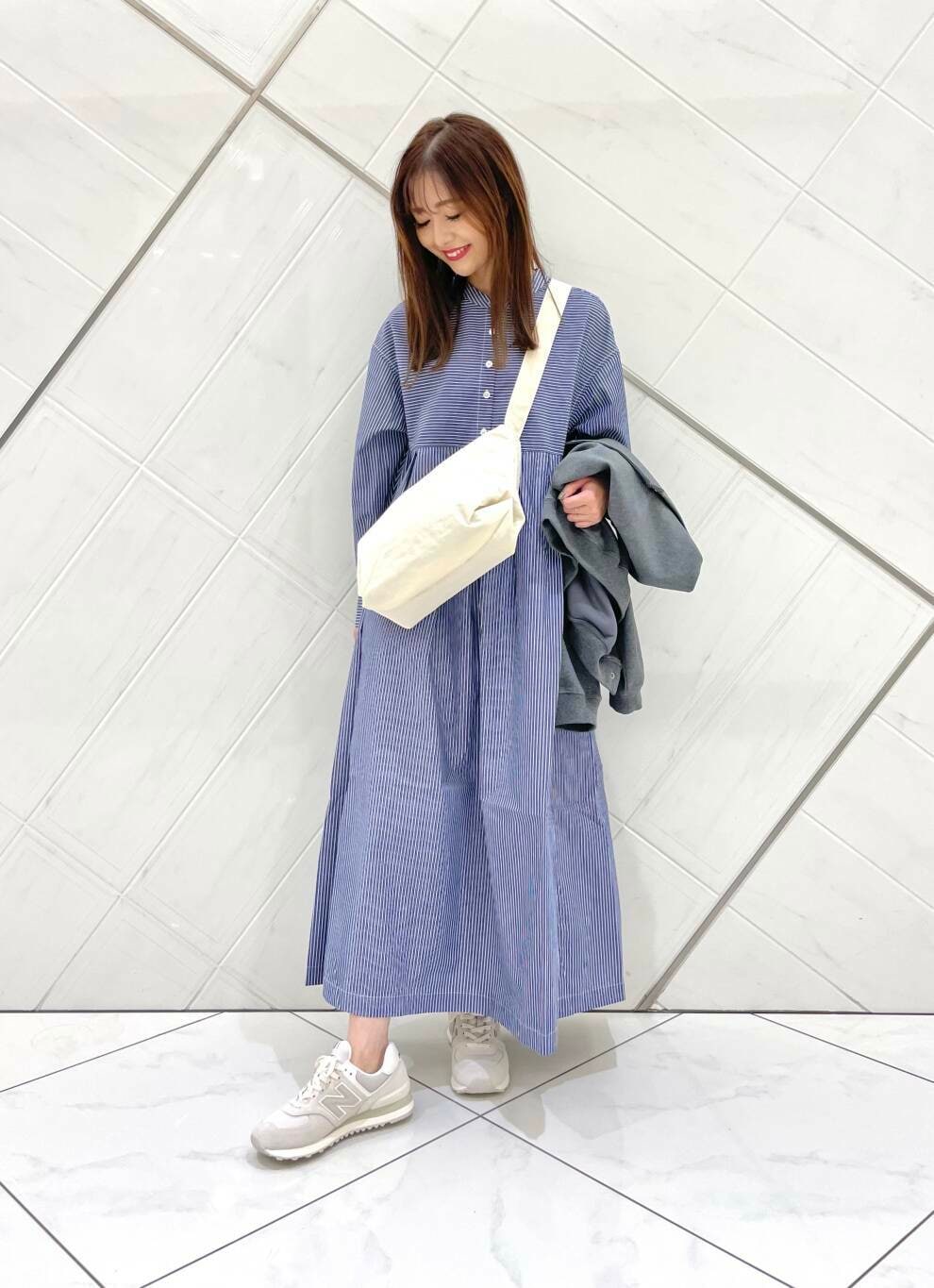 気温が下がるとパンツやタイツを合わせるのもおすすめです。