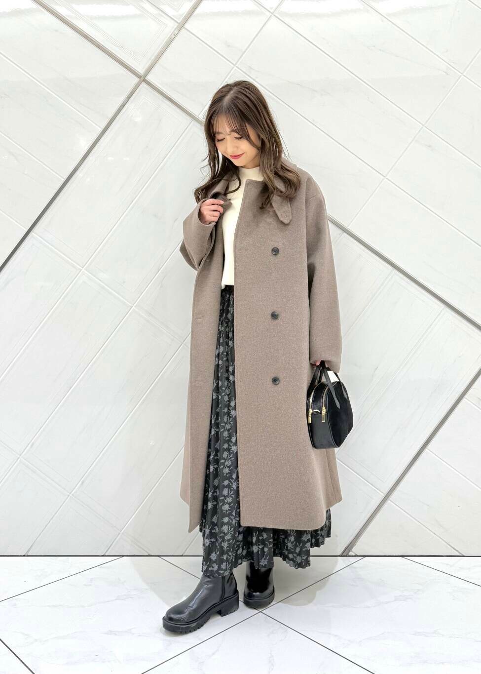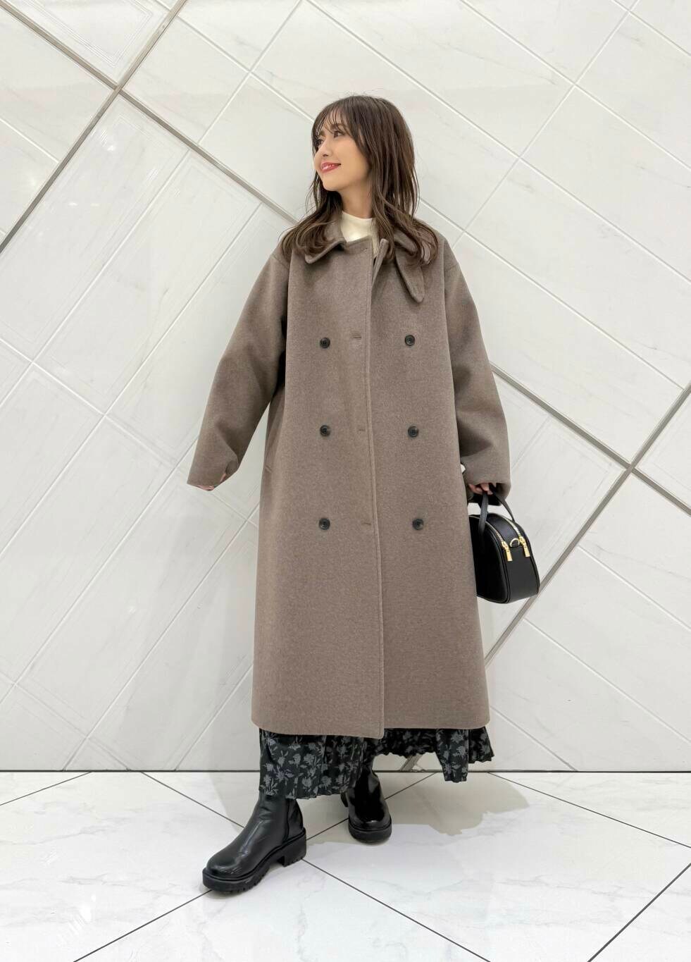 入荷したばかりのアウターは肌触りもよく、裏地の付いたしっかりとしたロングアウターです。
