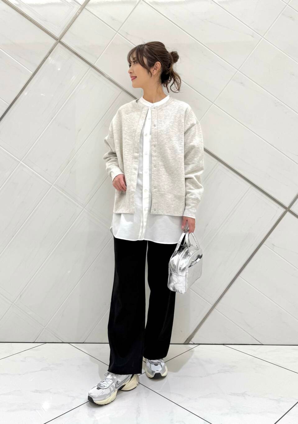 カーディガンは薄手のスウェット生地で裏起毛になっているので暖かく、腰にかかるくらいの短めの着丈なのでボトムスを選ばず着回ししやすいアイテムです。